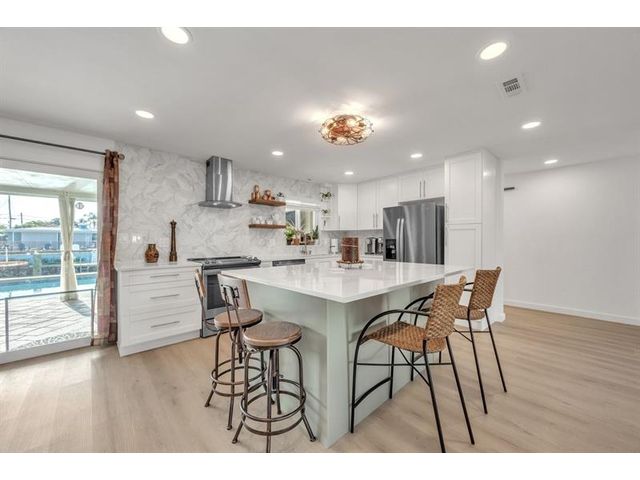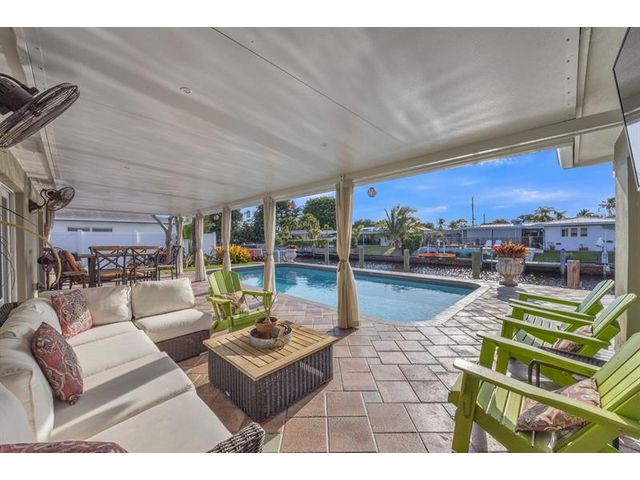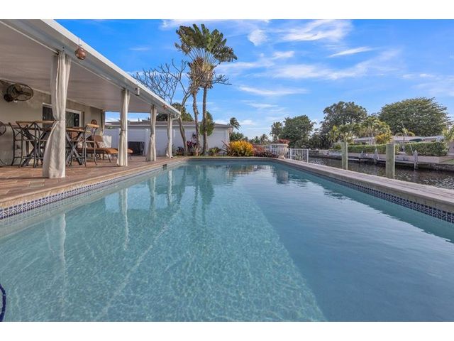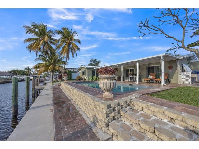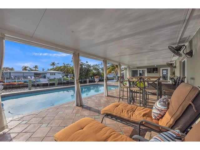 Hidden Gem! Beautiful completely move in ready 3 Bed, 2 Bath, 2 Car Garage with lots of storage Waterfront Property. This entertainers dream home comes with New Seawall & Dock & replaced old galvanized pipes & sewer lines. Enjoy yourself by the saltwater heated pool. Incl pool maintenance equip. Or relax on the 490 sq ft patio with fans & tv. New a/c & tank less water heater. Tinted impact windows & doors. Beautiful solar landscaping with potted plants. Incl. Lawn maintenance equip. Newer appliances with 2 refrig. with filtered water & icemaker. Plus wine frig. Smart alarm, camera & sprinkler syst. Backup generator. Lots of upgrades near premium schools on cul de sac like property. Bridge is being raised from 6.44 high tide- low tide 8.36 to 10.37 High tide and 12.29 low tide. Sept 26