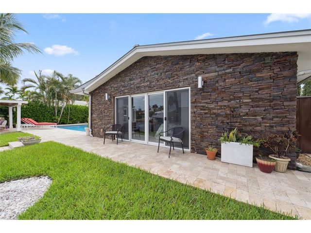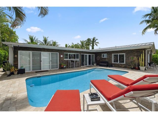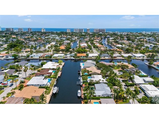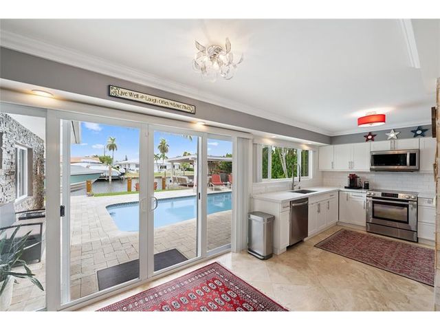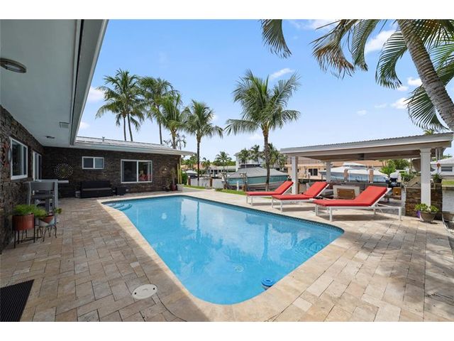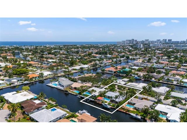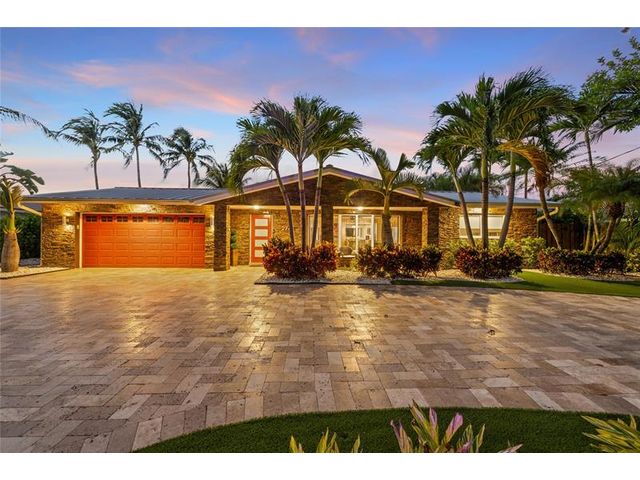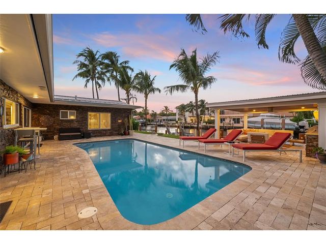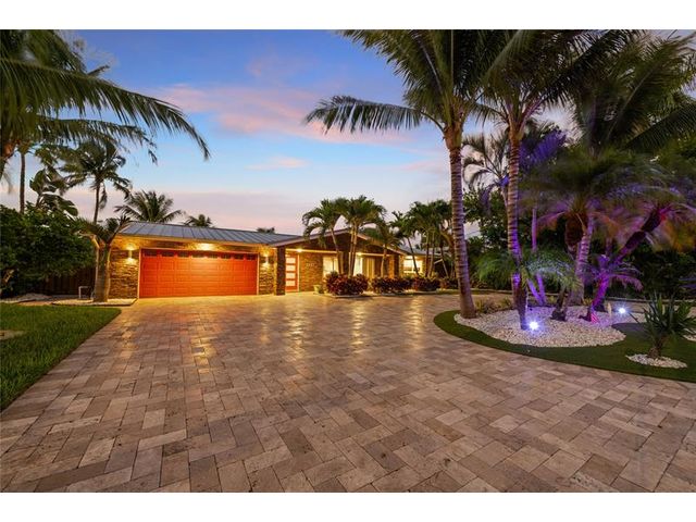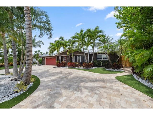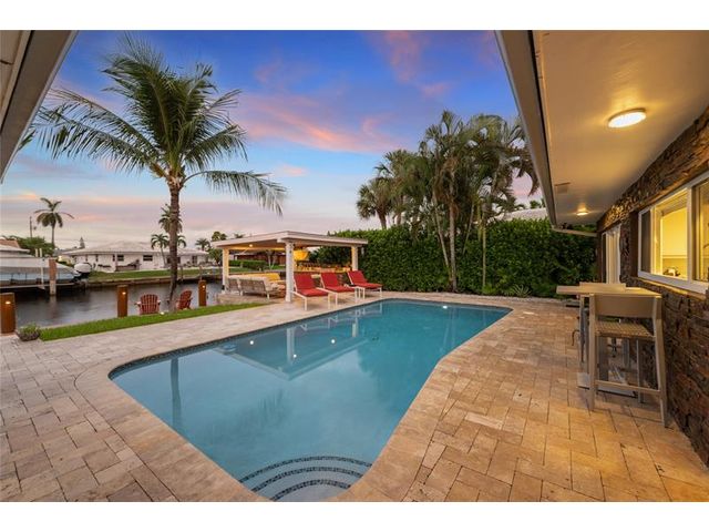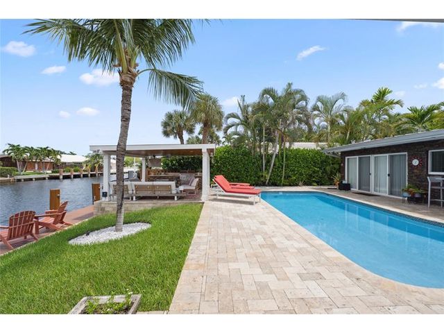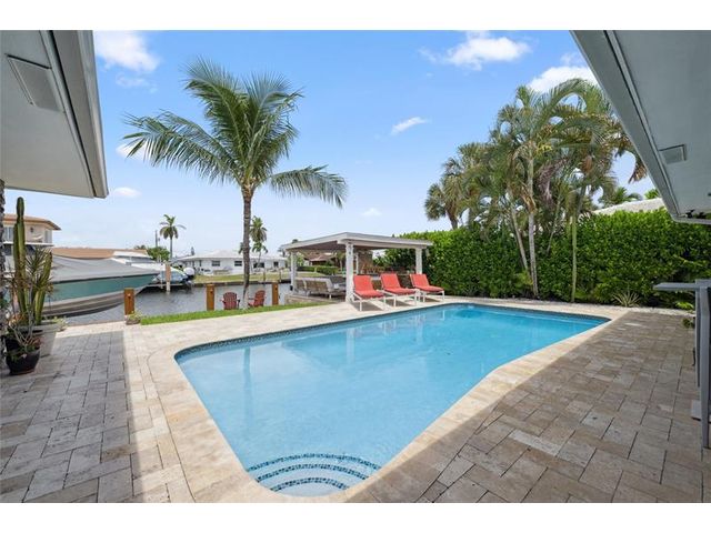 What a great waterfront home. Located on 80 feet of water frontage. This 4 bedroom and 3 bath home has been beautifully updated. Open kitchen with all new appliances. Hurricane impact windows and doors. Over sized 2 car hurricane impact garage door. Plus the garage is air conditioned. If you love to entertain, you will love the back yard with all the landscaped lighting. The pool has been updated with new heater/chiller. Great out side summer kitchen and gazebo. New 10,000 lbs boat lift and new Trex dock and under water lighting. The roof was replaced in 2017. Very quiet street and close to shopping, restaurants and the ocean. This is a must see.