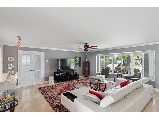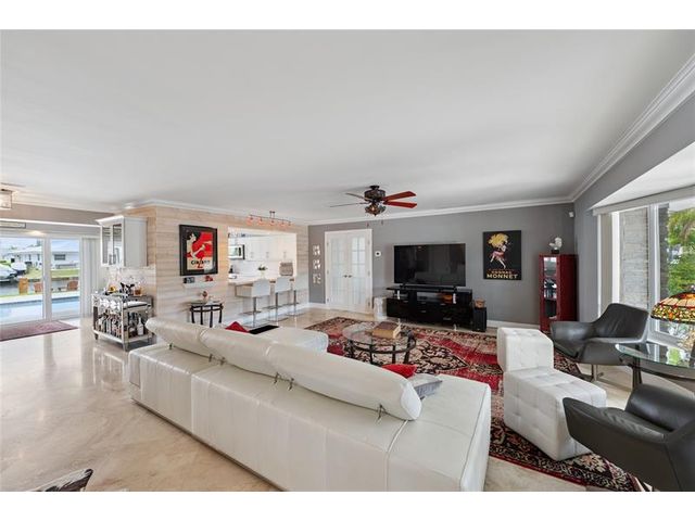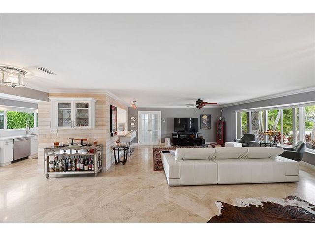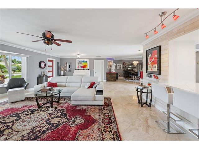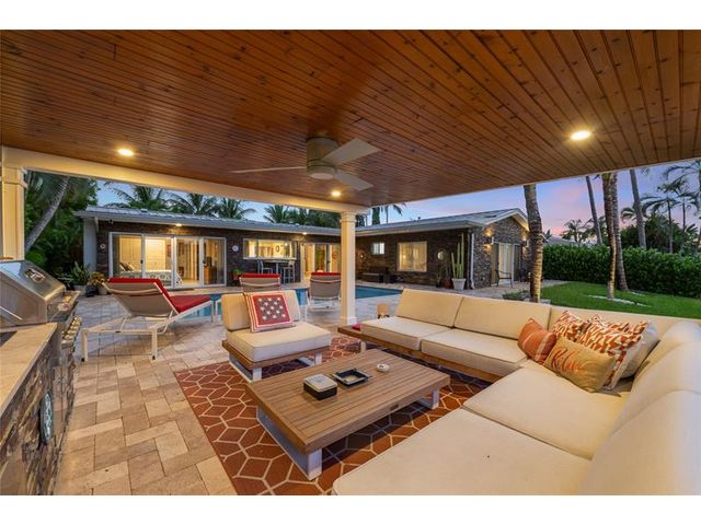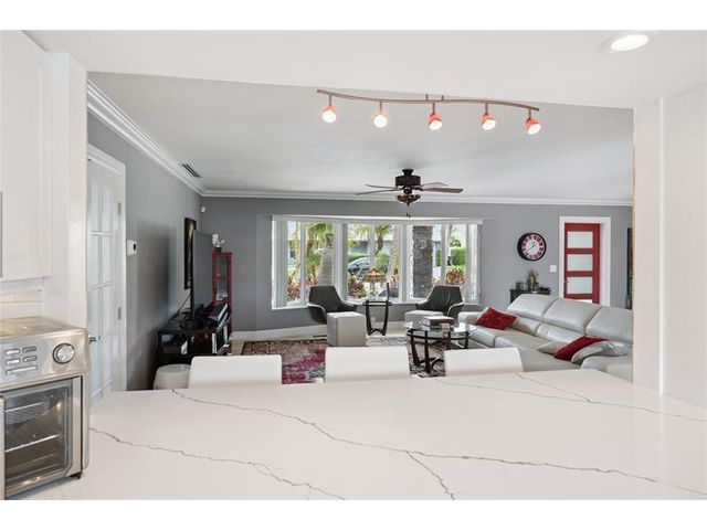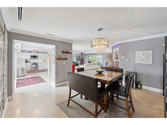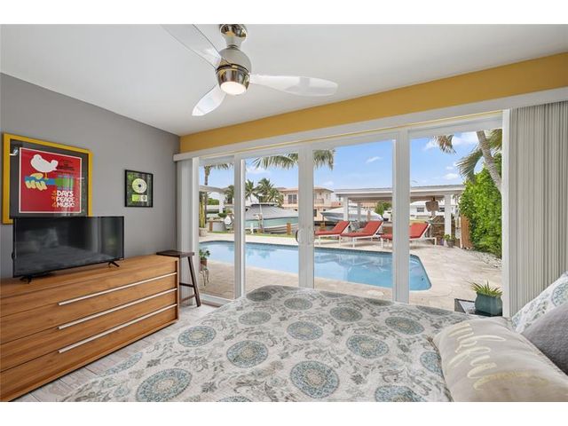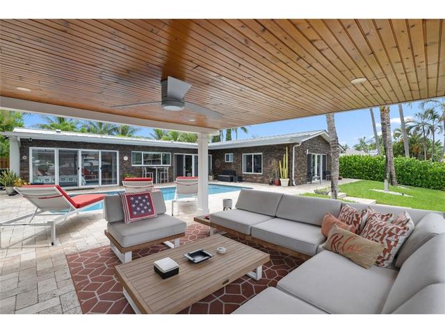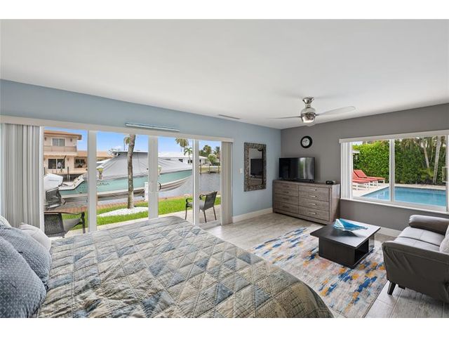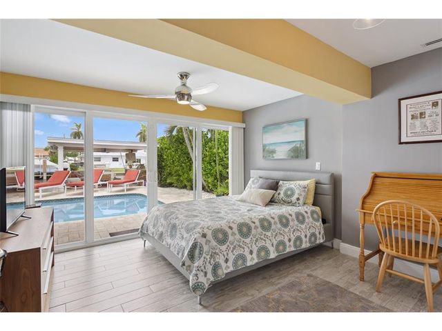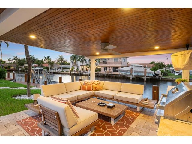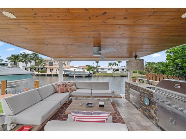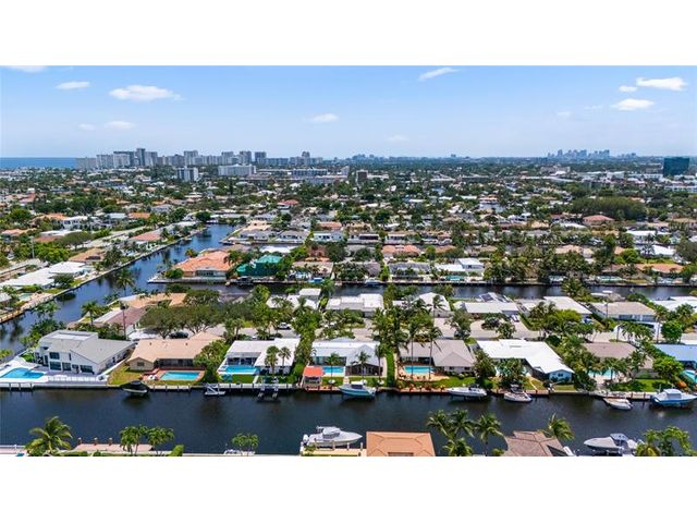 What a great waterfront home. Located on 80 feet of water frontage. This 4 bedroom and 3 bath home has been beautifully updated. Open kitchen with all new appliances. Hurricane impact windows and doors. Over sized 2 car hurricane impact garage door. Plus the garage is air conditioned. If you love to entertain, you will love the back yard with all the landscaped lighting. The pool has been updated with new heater/chiller. Great out side summer kitchen and gazebo. New 10,000 lbs boat lift and new Trex dock and under water lighting. The roof was replaced in 2017. Very quiet street and close to shopping, restaurants and the ocean. This is a must see.