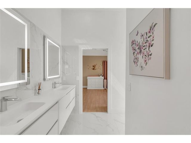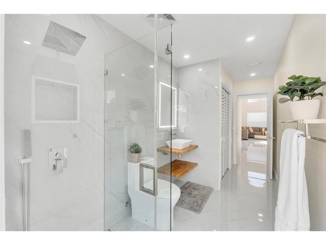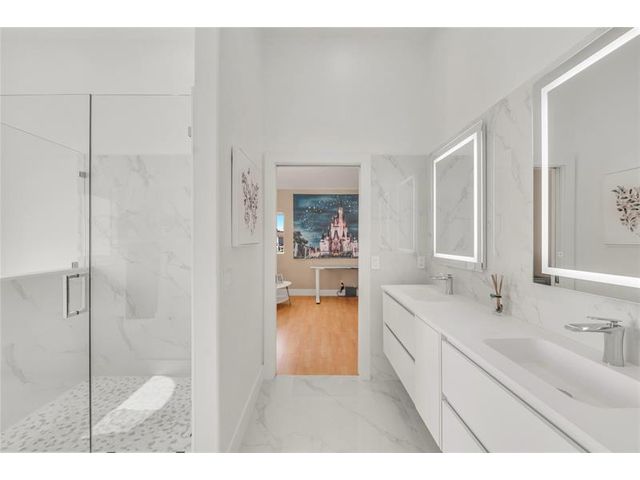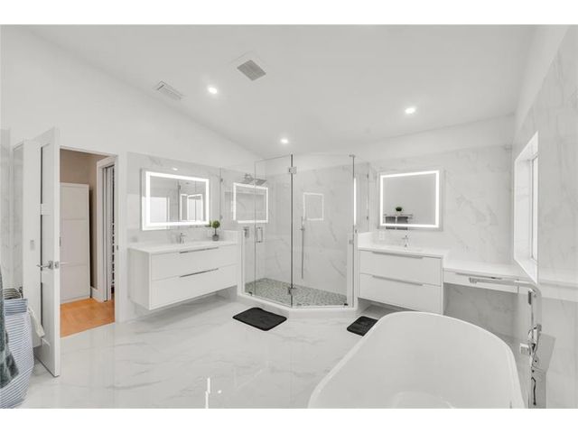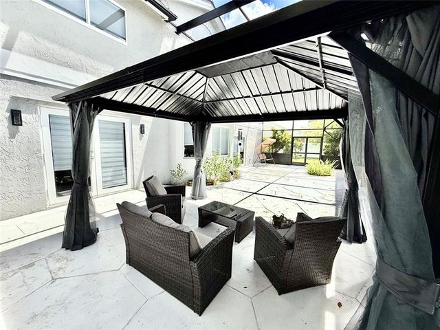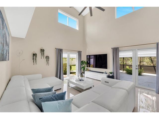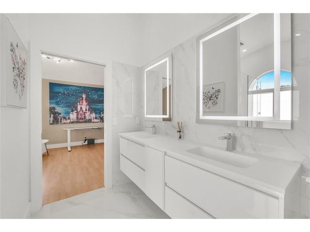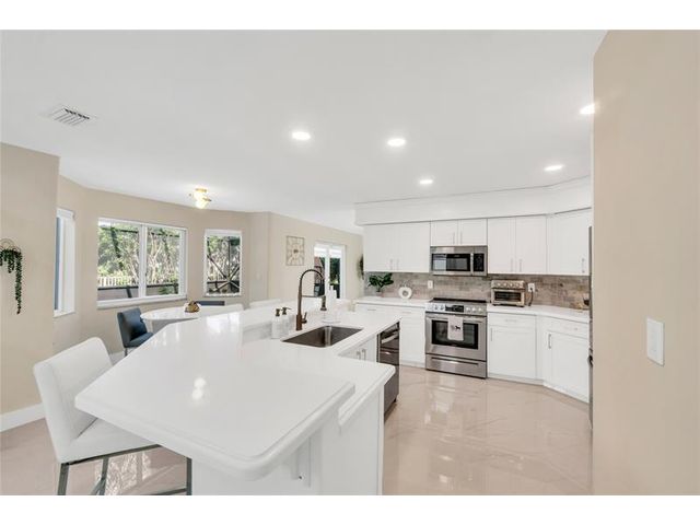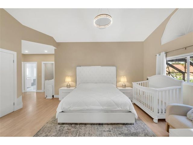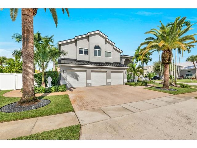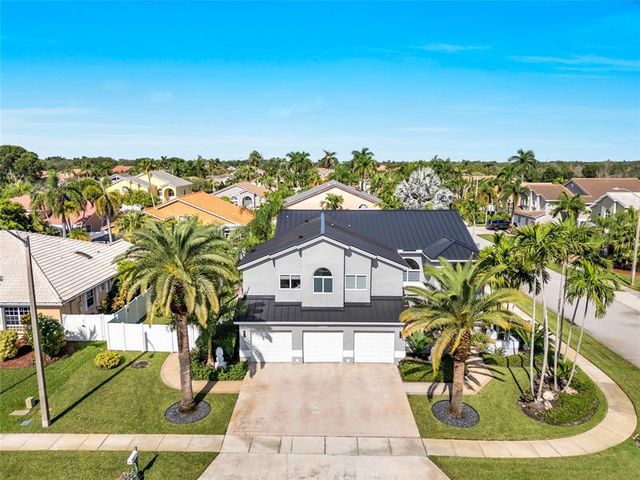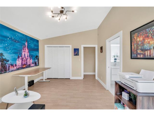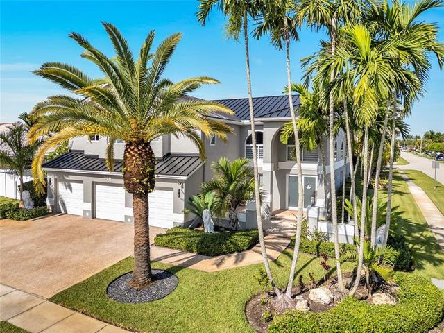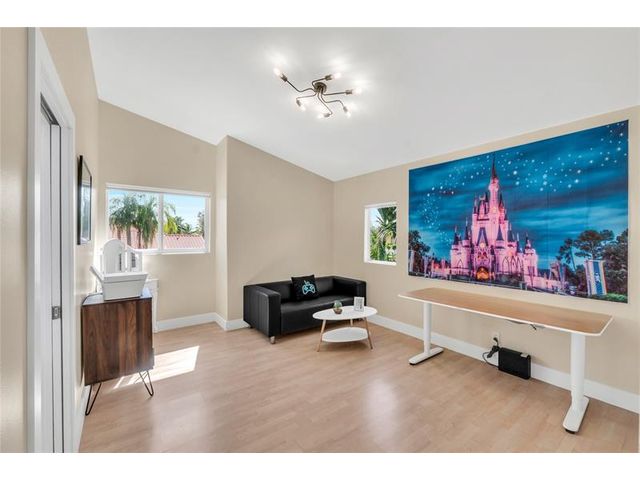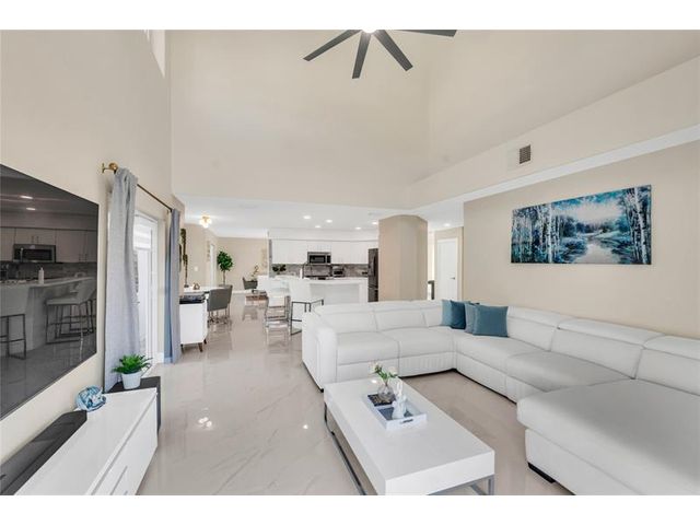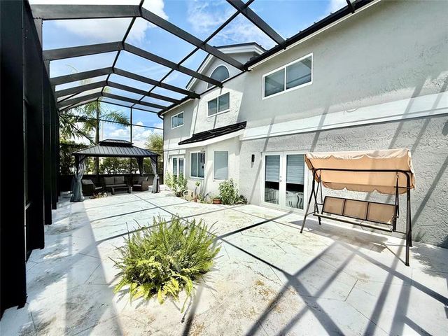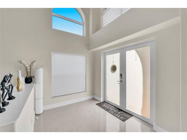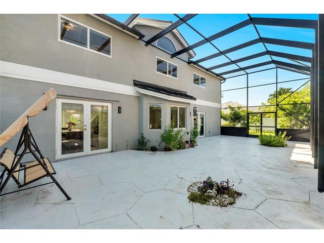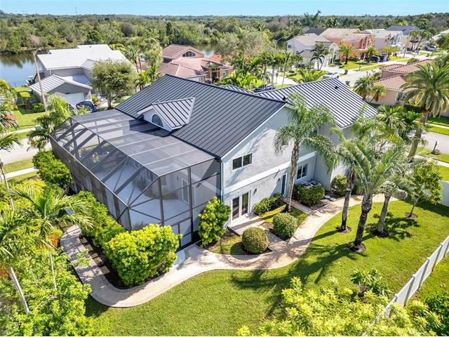 Welcome to this beautifully renovated 4-bedroom, 3-bath home where pride of ownership shines. With 3,292 sq ft of living space on an oversized corner lot, it offers a spacious layout and peace of mind with a new metal roof (transferable warranty) and full impact windows & doors. Inside: updated bathrooms, stylish kitchen, new electric panel, tankless water heater, LED recessed lighting, and smart-home controls for locks, garage, 2 ACs, lighting, and sprinklers. 48x48 porcelain floors downstairs, laminate upstairs, custom closets, and neutral finishes create a timeless look. One bedroom and full bath on the first floor, plus a primary suite with bonus room for office/nursery. Dual laundry setups and an EV-ready garage add convenience. Resort-style amenities complete this move-in ready home