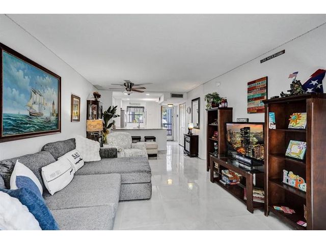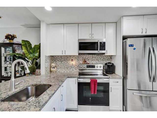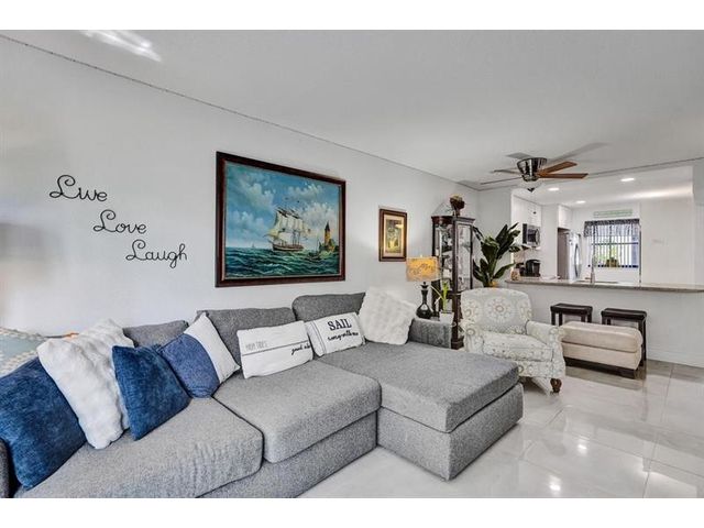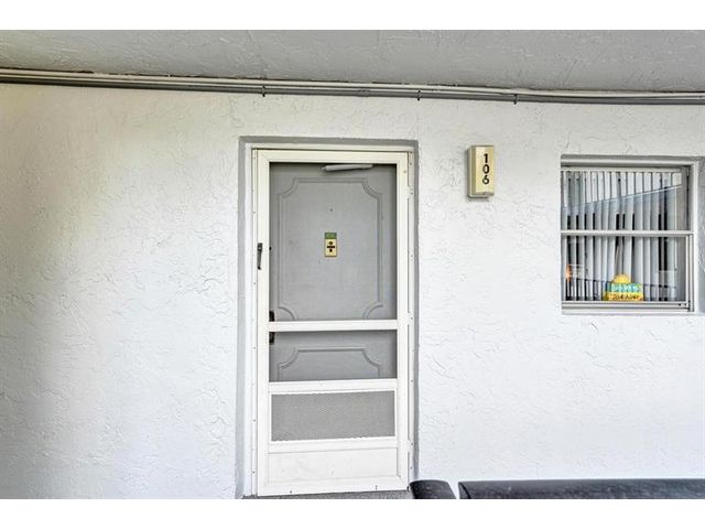 Remodeled in 2021, move-in ready. Ground floor unit offers easy access from parking lot to front door. Enclosed porch/Florida room adds space. Elegant 24" porcelain tile throughout. White Shaker 42" kitchen cabinets and granite counter tops in the kitchen. Pantry and additional cabinets were added to make this kitchen second to none. 55+ community with amazing clubhouse and amenities.