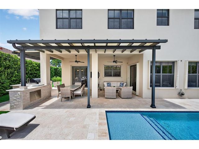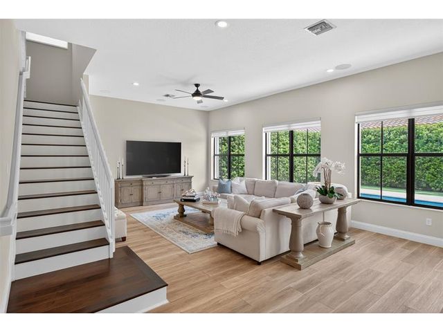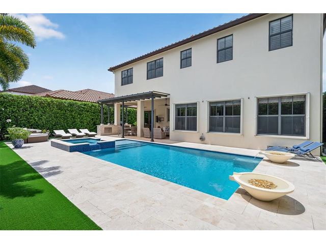 Highly sought-after Delano model featuring resort-style Heated pool & spa, custom pergola, outdoor shower, artificial turf & custom built-in outdoor grill. This model packs a punch with In-law suite with separate entrance. Impact glass on second-floor windows & striking new impact glass front door with remainder of openings protected by accordion. Kitchen with top of line appliances including double oven & center island. Several bedrooms offer private en-suites, multiple rooms feature balconies. Custom built-out closets. Extra-long driveway adds convenience & curb appeal while the landscape lighting front and back adds charm. Upscale amenities at clubhouse, fitness center, basketball & tennis, dog park, & scenic walking trails. A rated school & walking distance to houses of worship.