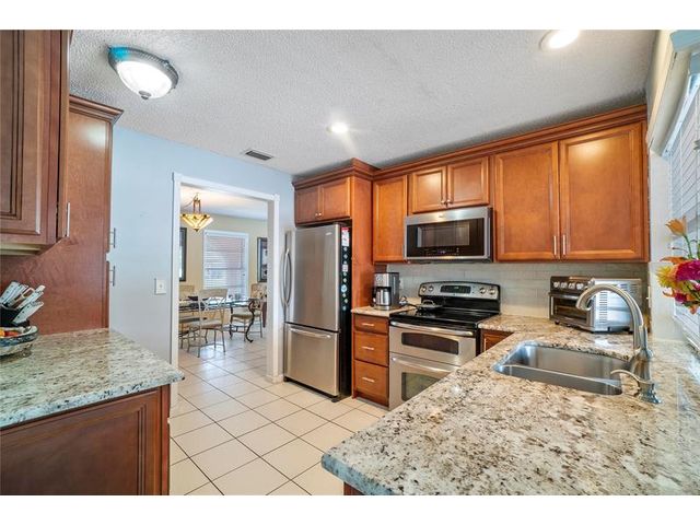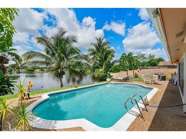 Beautiful **NO HOA** 3 bedroom, 2 bathroom, 1-story single family **POOL HOME** on **WIDE WATER** with garage, private driveway, wonderful **FULLY FENCED-IN YARD** and gorgeous **WIDE WATER VIEWS!!** THIS LOVELY HOME FEATURES A GORGEOUS UPGRADED NATURAL CHERRY WOOD KITCHEN, GRANITE COUNTER TOPS, TILE BACKSPLASH, STAINLESS STEEL APPLIANCES, ROLL-DOWN HURRICANE SHUTTERS, NEUTRAL TILE & WOOD FLOORING THROUGHOUT, FRESHLY PAINTED **INSIDE & OUTSIDE,** RENOVATED BATHROOMS, AND TRANQUIL BACKYARD WITH LARGE COVERED DINING AREA AND PLENTY OF ROOM FOR THE LOUNGE CHAIRS, THE BARBECUE, AND ENTERTAINING!! QUIET STREET AND GREAT NEIGHBORHOOD!