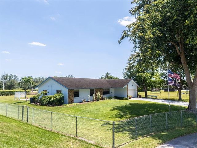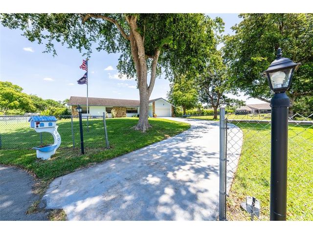 $889,000!! HURRY! WEST DAVIE'S HORSE COUNTRY! WONDERFUL ACRE HOME NESTLED IN A PRIVATE CUL-DE-SAC! LARGE LIVING & FORMAL DINING ROOMS, LARGE ISLAND KITCHEN OPENS TO FAMILY ROOM ALL WITH VAULTED CEILINGS, EASY TO CREATE OPEN CONCEPT LIVING! LARGE MASTER WITH WALK IN + ADD'L WALL CLOSET. FRENCH DOORS OPEN TO LARGE COVERED PATIO WITH WHITE ALUMINUM COLUMNS. HEATED POOL/SPA! NEW SEPTIC IN 2022. MANICURED DEEP YARD HAS ROOM FOR BIG TOYS, HORSES, GARDENS & HOSTING FAMILY GATHERINGS! ENJOY LOTS OF NATURE ON PRIVATE CANAL! SPRINKLER SYSTEM IS CANAL FED SO NO RUST! EXCELLENT SCHOOLS: COUNTRY ISLES IN WESTON! EASY ACCESS TO DAVIE'S RECREATIONAL TRAIL SYSTEM, VISTA VIEW PARK, I-75, 595, WESTON'S TOWN CENTER, SAWGRASS MALL, CLEVELAND CLINIC, HOUSES OF WORSHIP, AMERICAN HERITAGE, ETC. ALL MINUTES AWAY.