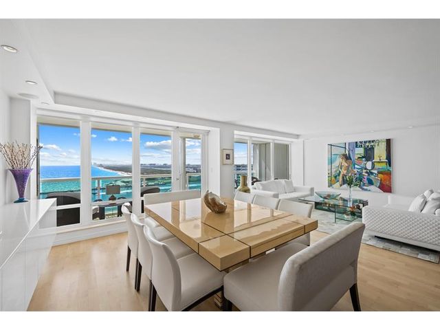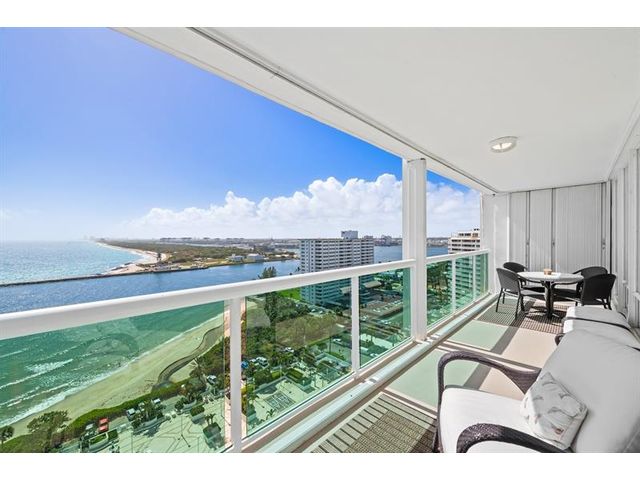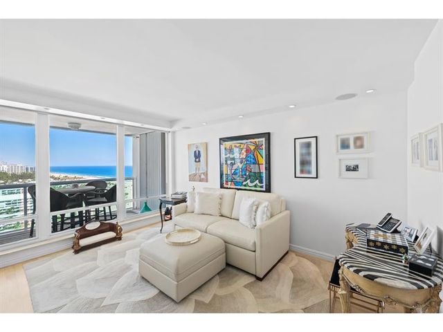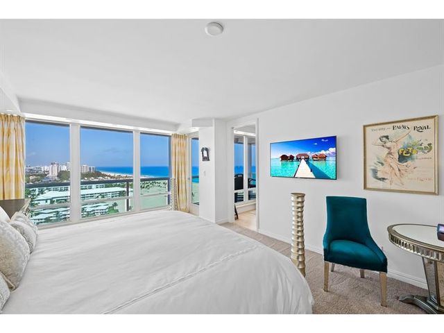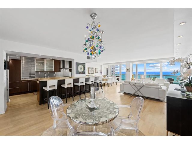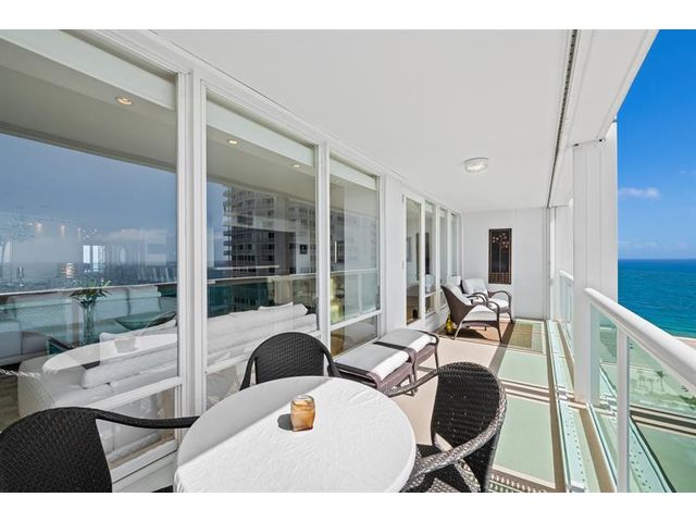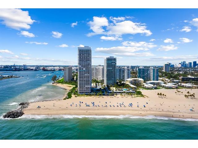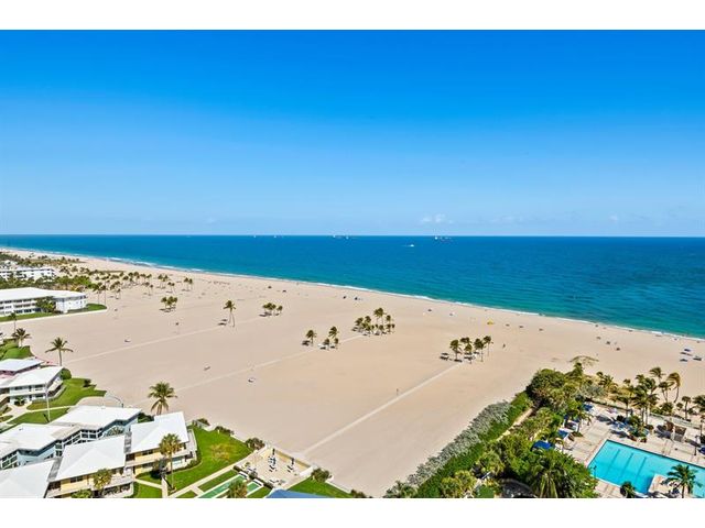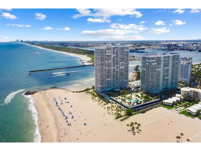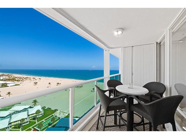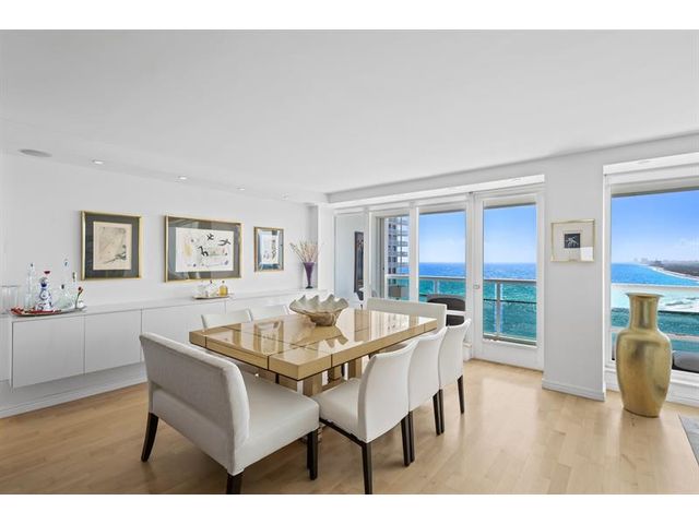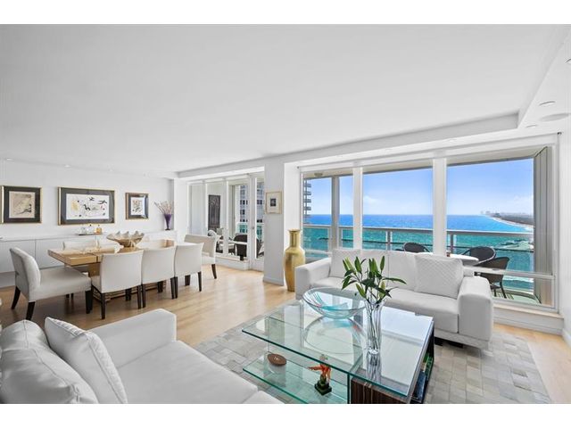 Contemporary, decorator-designed condo, fully remodeled with exquisite attention to detail. Featuring a Downsview gourmet chef’s kitchen with top-of-the-line appliances. The primary suite features his & hers custom walk-in closets with shoe & handbag storage, expansive spa-like bath & water views. 2nd bedroom features a walk-in closet & full bath. Enjoy a built-in surround sound system, Lutron lighting & motorized sunshades throughout. Expansive north and south terraces showcase spectacular ocean & inlet views. Resort-style amenities include an on-site restaurant, 24-hour guard gate, secured lobby, EV charging stations, library, fitness center, 2 pools, & the widest private beach in Ft Lauderdale with full beach attendant service—delivering a truly luxurious and effortless lifestyle.