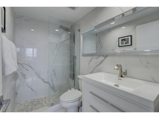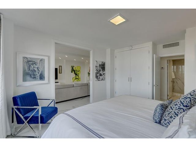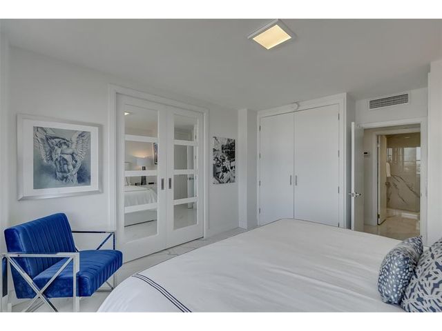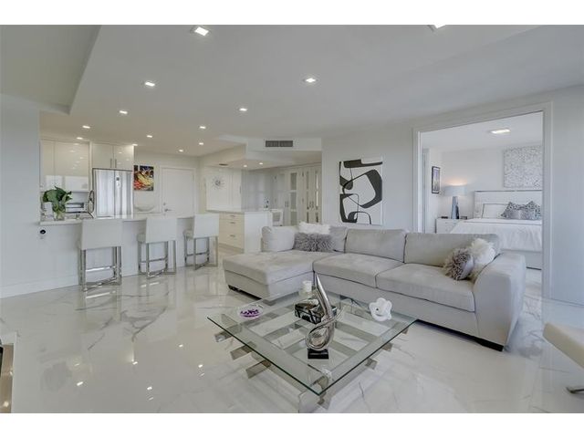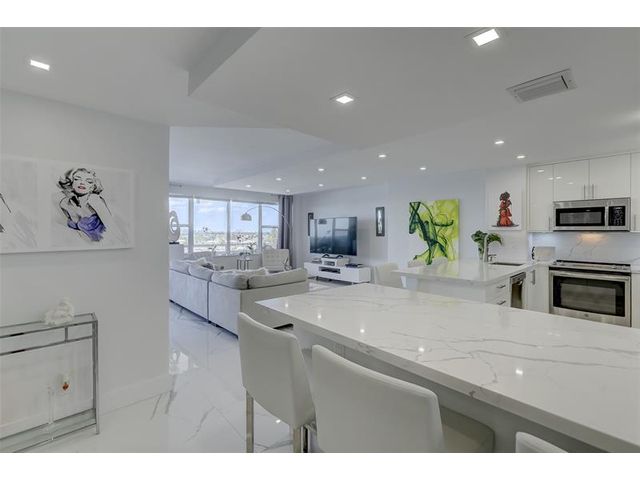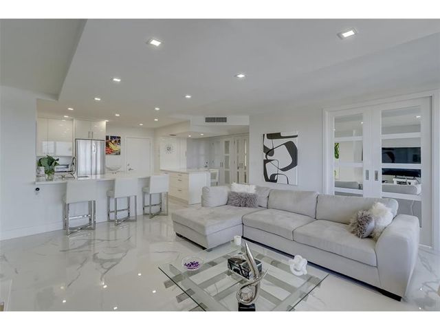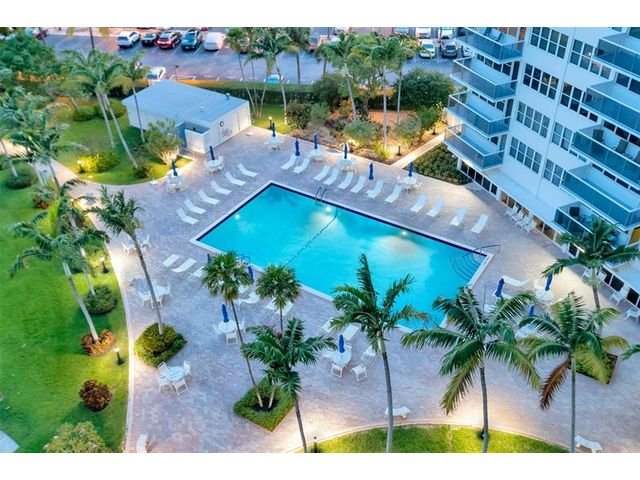 GORGEOUS remodel. HUGE 1 bedroom open concept residence on the 8th floor flows seamlessly for entertaining or privacy. Pocket doors open up the bedroom to a theatre size living room TV. Two kitchen islands, 32" porcelain tile throughout, designer closets & modern bath featuring a spa shower. Enjoy extraordinary views on your spacious balcony with panoramic scenes of connecting canals, the Intracoastal down below and fabulous sunsets. FINANCIALLY SOLID BUILDING WITH ALL MAJOR PROJECTS COMPLETE. FULLY FUNDING RESERVES. See attached Milestone and SIRS study. New roof 2023. Maintenance includes high speed fiber optic cable, internet, water, sewer, trash, 24 hour private guards, heated pool, Intracoastal clubhouse, 1 parking space, on site management. 55+ community, cash only.
