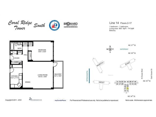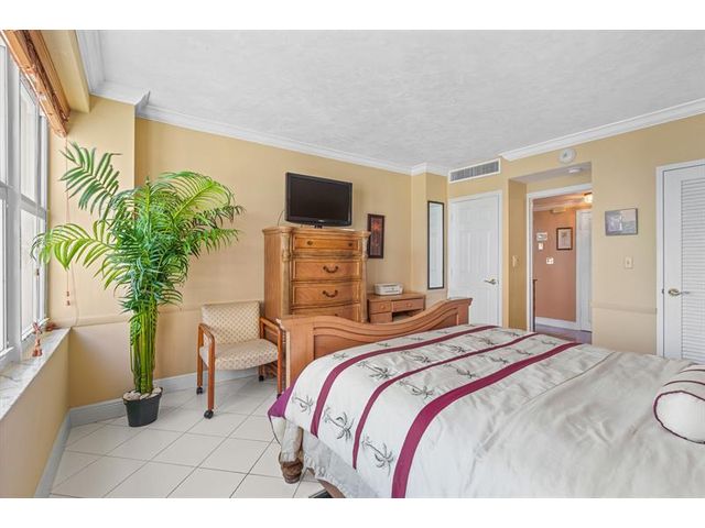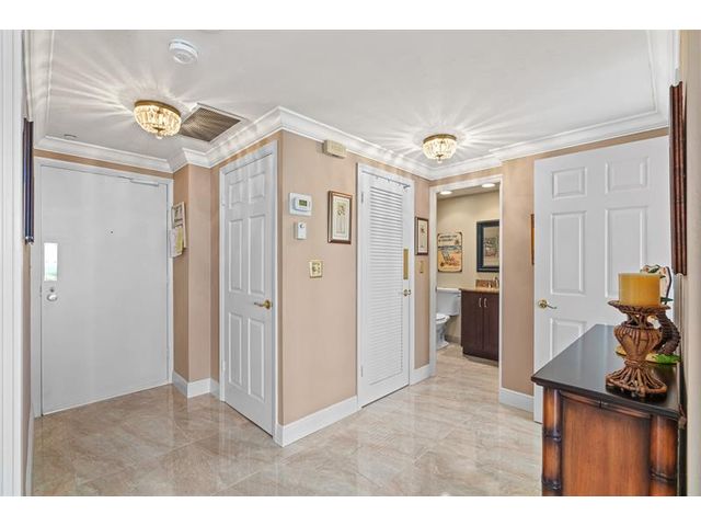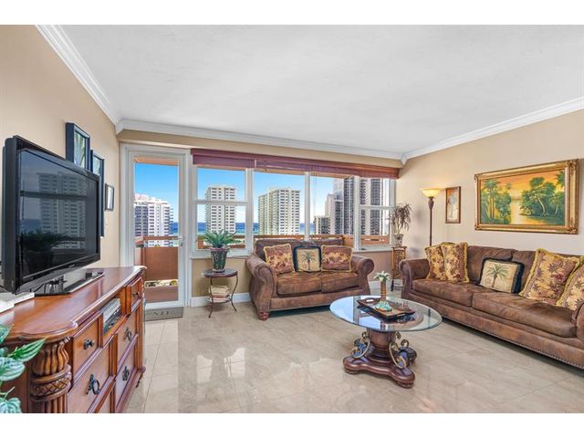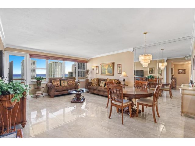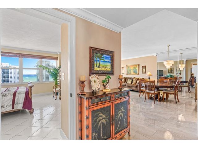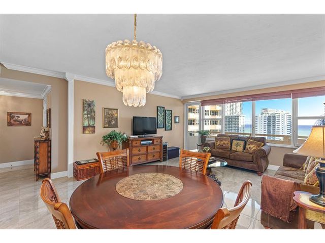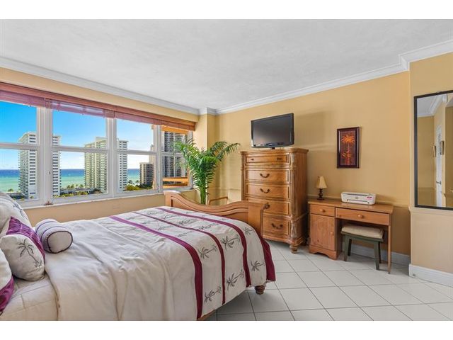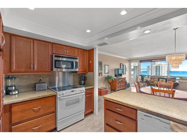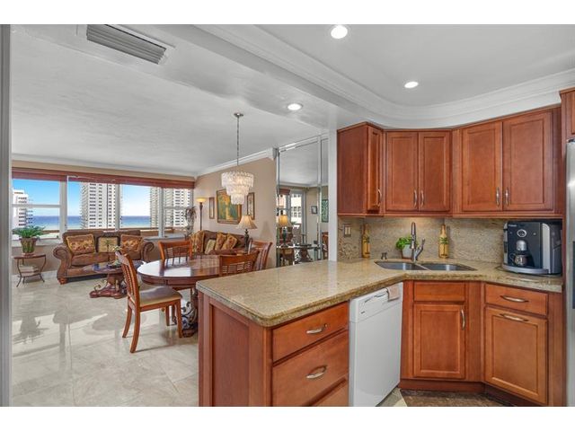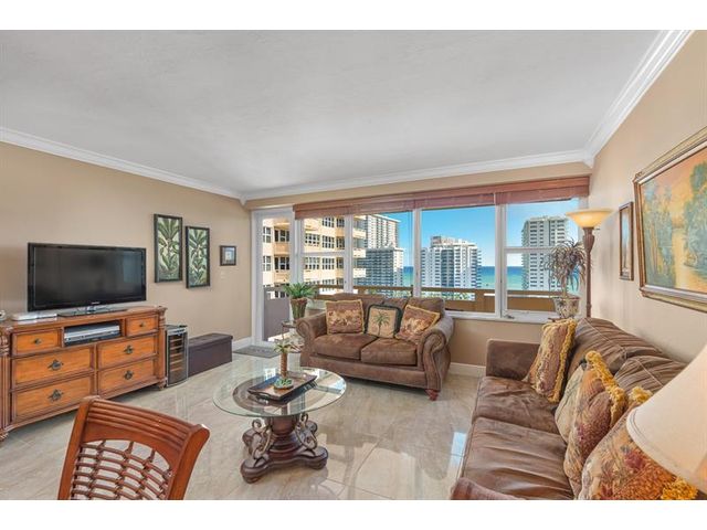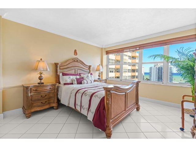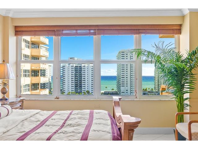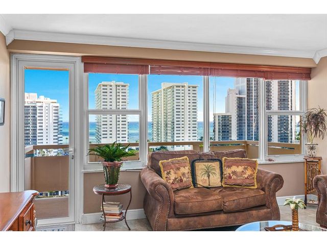 Beautiful one bedroom and one bath ocean view apartment offers an unmatched blend of luxury, comfort and convenience with large porcelain tile flooring and an updated stainless steel kitchen appointed with granite counters. Wake up to breathtaking sunrises, from the expansive glass balcony that frames the stunning ocean view, bringing the serene outdoors in and filling your home with natural light. Coral Ridge Towers offers all the conveniences of beachside living, with the added peace of mind of 24/7 security and professional onsite management. This 55+ Co-Op community is located on the barrier island with shopping, grocery stores and restaurants close by. The building offers an array of great amenities including a heated pool surrounded by tropical landscaping, exercise room and more.