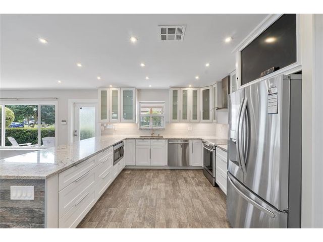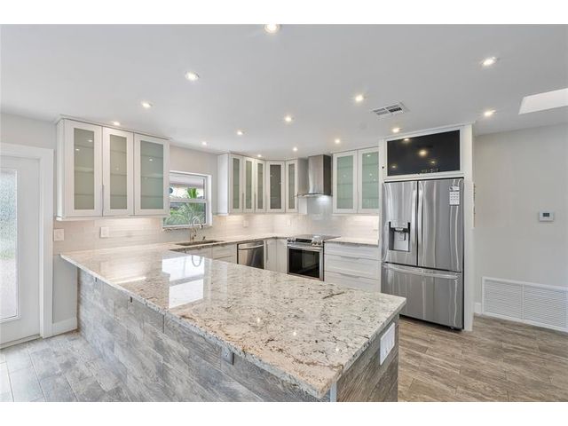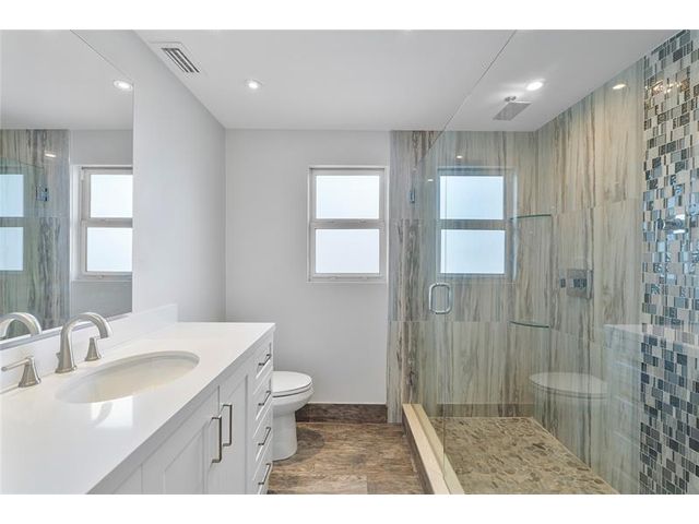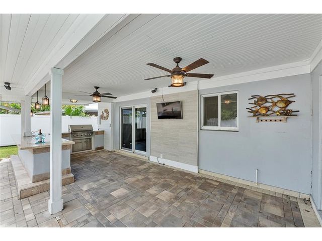 Experience this modern 4BR/3BA POOL home, 1-car garage, MINUTES to the BEACH & perfectly situated street, lined with waterfront, multi-million dollar homes! Fully updated residence offers the ideal blend of style & comfort! Two PRIMARY suites with a smart, split floor plan and open-concept living & dining spaces make this home a rare find! Fully updated kitchen w/custom cabinetry & SS appliances-a chef's dream! Open, airy & move-in ready! Modern baths, fixtures and flooring! Complete IMPACT windows/doors & freshly painted interior! Enjoy a private outdoor oasis w/ resort-style pool, chef's outdoor kitchen, outdoor shower & PVC privacy fencing- perfect for entertaining w/ family & friends! Nestled in a NO HOA community, this home blends modern touches w/warm features for everyday living!