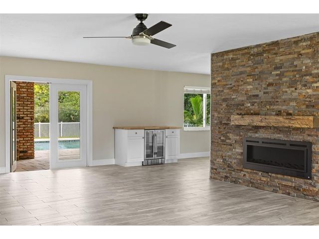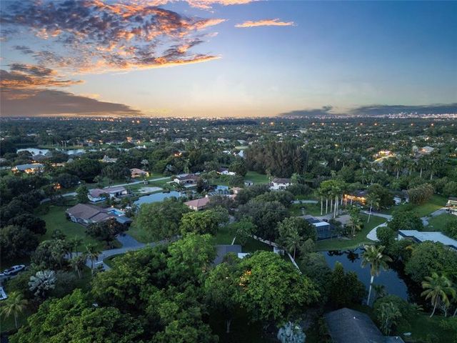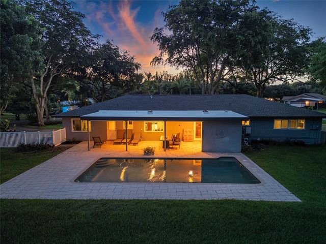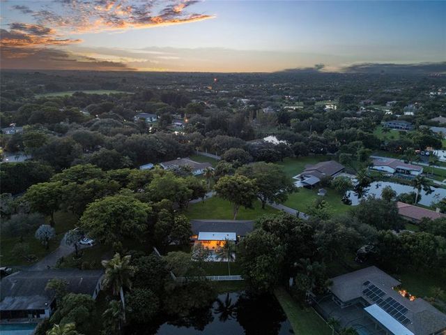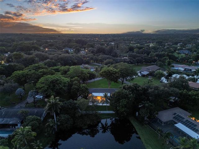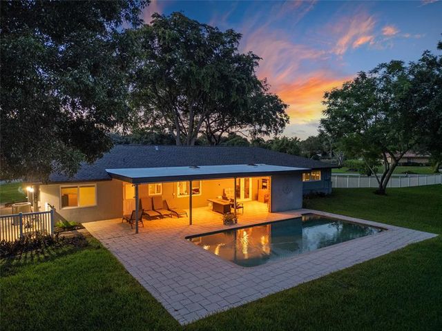 Tucked at the end of a double cul-de-sac in Davie’s Prestigious Hiatus Isles, this one-story retreat blends privacy and lifestyle. Wake up to shimmering lake views and birdsong, spend afternoons by the oversized pool or casting into a fish-filled pond, and gather in the evenings by a cozy fireplace. Sunlight fills bay-windowed living and dining rooms, while the eat-in kitchen perfectly frames the water. Sliding doors open to a covered patio for alfresco dining and sunset views, with room to add your own dock. In a serene, non-HOA enclave near top schools, every arrival feels like coming home. Sellers are open to offering a credit toward buying down your interest rate or closing costs—an added opportunity to step into this lifestyle with ease.