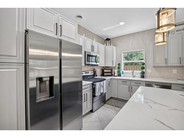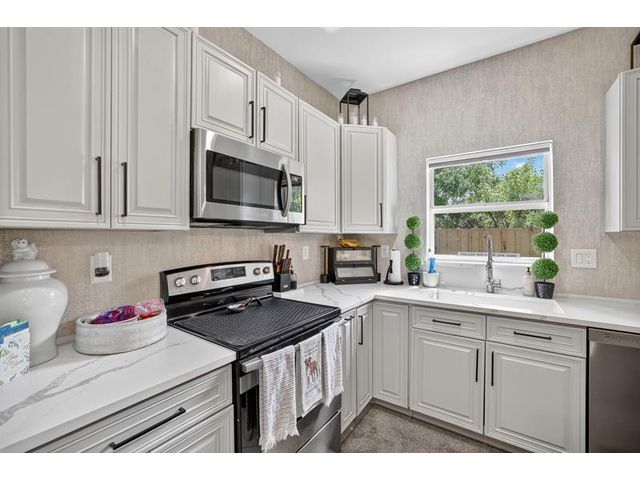 APPRAISED 9/29/25 @ $675,000 Fully solar-powered (transferable) and brimming with high-end upgrades, this home blends luxury and energy efficiency. The kitchen shines with quartz countertops, 6.5ft X 3.5ft island with waterfall edge, custom Italian wallpaper bespoke live-edge wood shelving above the bar and overhead adjustable lighting. All appliances are new within the last 2 years, including commercial-grade faucet and wine cooler. Home features new AC coils, remote-controlled fans, new patio pavers, smart irrigatioon can control remotely, NEW UP TO DATE CODES Fire/Carbon Monoxide alarms in every room. New fence 7/2025. Primary bath new custom waterproof wood slat wall, mirrows,faucets, lighting (9/2025) in 2nd bath new vanity, sink, faucets. remote controlled outdoor lighting under eves