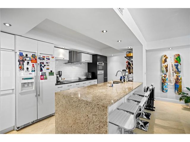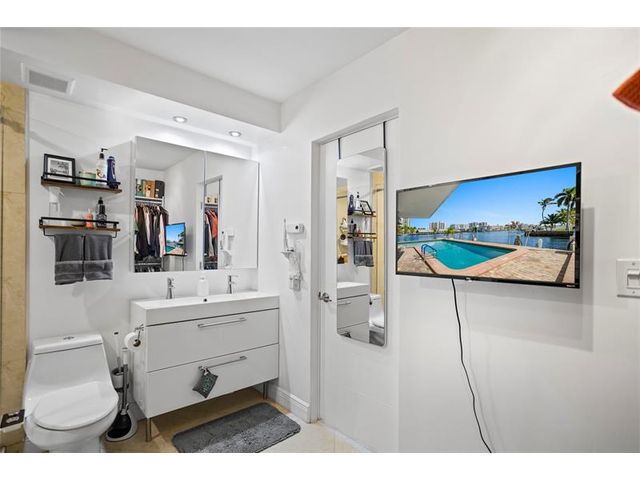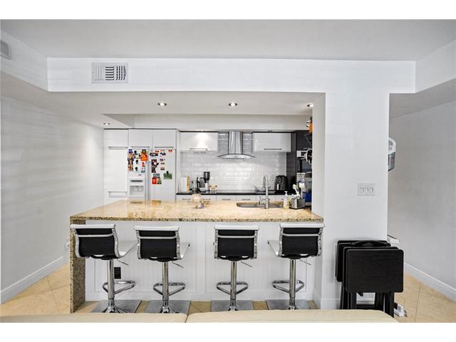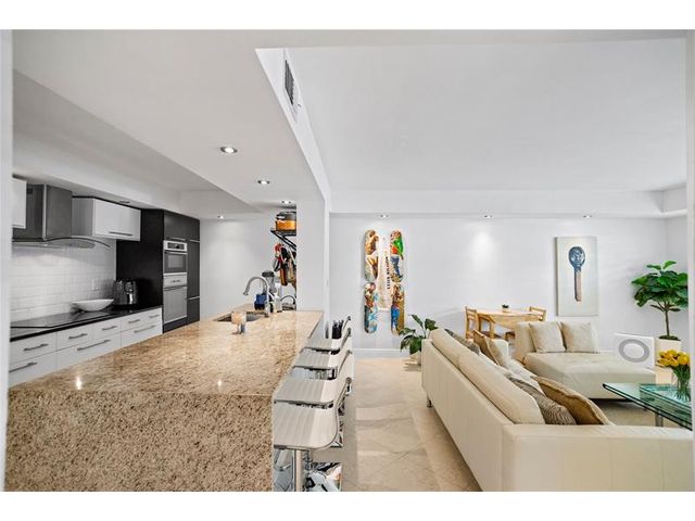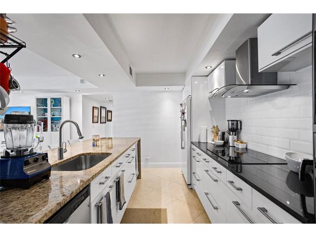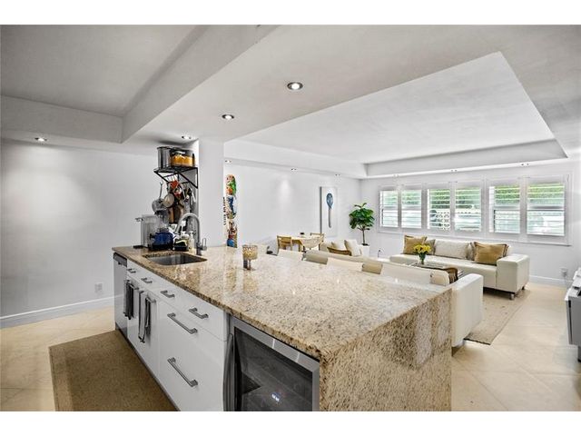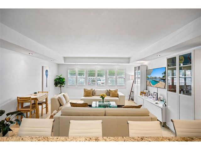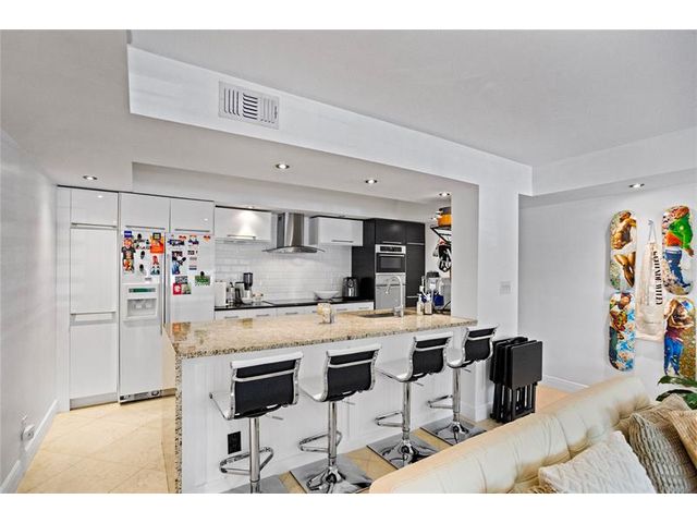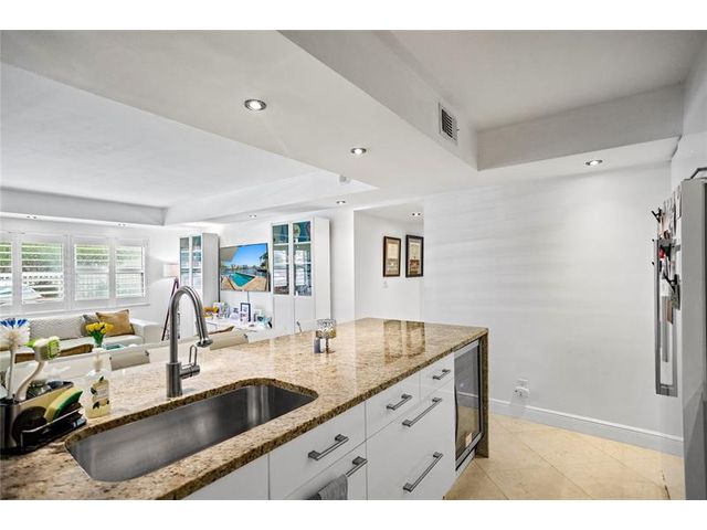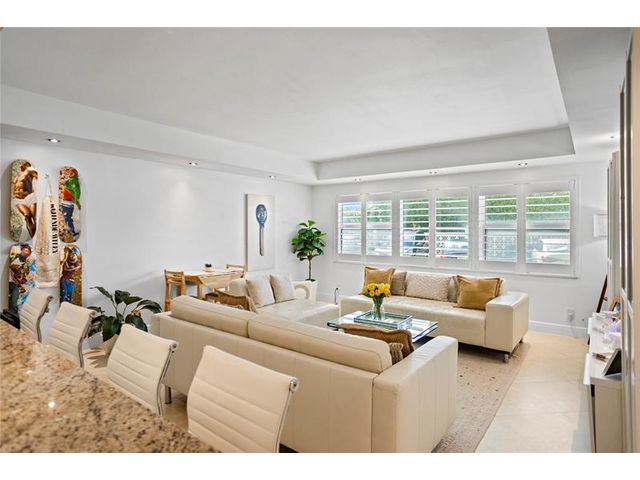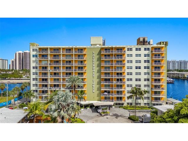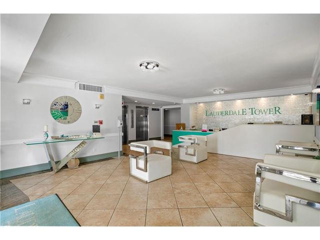 Beautifully remodeled 2 beds/2 baths condo for SALE, located in desirable Lauderdale Tower on the Intracoastal. Unit features updated tile, impact windows, plantation shutters, renovated bathrooms & kitchen. Kitchen includes wall oven, built-in microwave, glass cooktop & wine cooler. The oversized island opens to the living room & features bar seating for four. The expansive living area is over 270 sq. feet and features dimmable soffit lighting. Adjacent to the living area is a large 11x14 ft guest room & renovated bathroom across the hall. The oversize main suite measures in at 11x17 ft. and has dual sliding glass doors that lead to the master bathroom and walk-in dressing area. Building 40yr Cert Completed. It features waterfront pool, exercise room, community dock and BBQ.