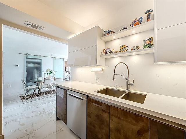 Architect’s residence with turnkey fully furnished option. 180-degree views of sunrises over the ocean, majestic sunsets, shimmering moonrises & serene lake reflections. Innovative living area seamlessly integrates the LR, DR & 2nd BR for open concept, but can be portioned into an office/bedroom w/ a panel pocket wall system. Artfully concealed Murphy bed creates a BR w/ closet & en-suite bathroom. Interior features: 3D accent walls, exquisite mother of pearl tile, custom kitchen, bar w/ built-in cabinets, entertainment center w/ floating shelves, motorized blackout shades, WIC, lots of storage, hurricane shutters & deeded parking (2nd available). Location is on the Soffer nature trail & Turnberry lakes…Walk to Aventura mall, restaurants, houses of worship, dog park, horse track