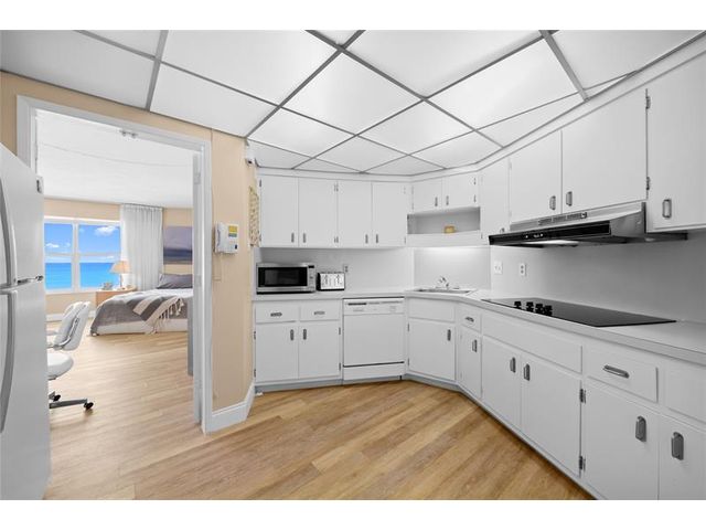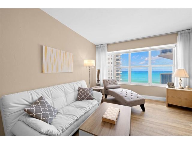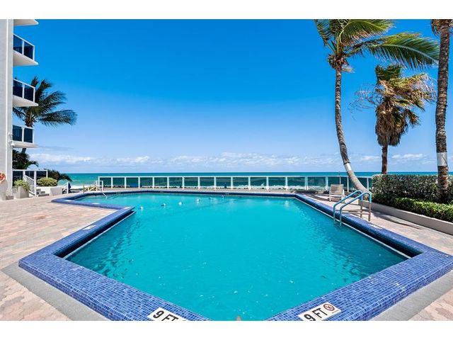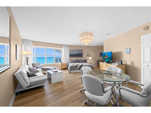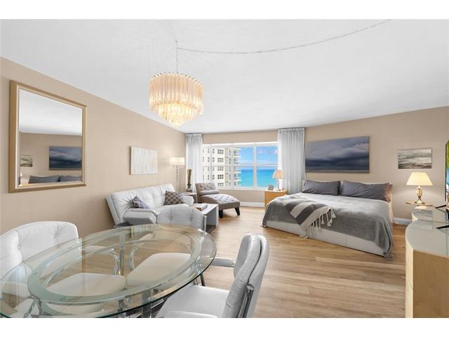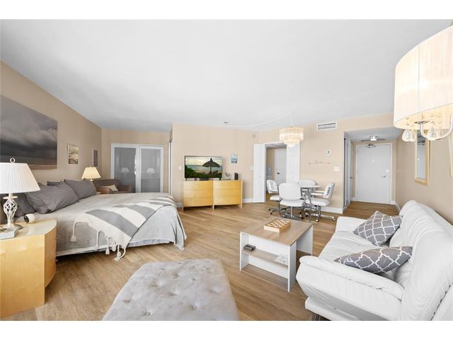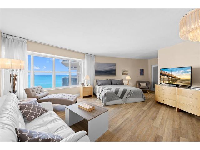 Step into your perfect oceanfront retreat without the hefty price tag! This spacious studio offers direct ocean views the moment you walk in. The open layout feels bright and inviting, featuring large impact windows that fill the space with natural light. Enjoy a spacious kitchen with ample storage space. Bathroom has tub/shower combo. Matching laminate flooring throughout. Extras include a new hot water heater, multiple closets and additional storage locker. Building allows in-unit washer/dryer installation. Resort-style amenities include a large pool, laudnry area, tiki bar with grilling area and TV, fitness center, valet, and community room. Conveniently located within walking distance to restaurants, shops, and pharmacy. Valet $50 a mth, self park $30 a mth and cabanas $10 a day.