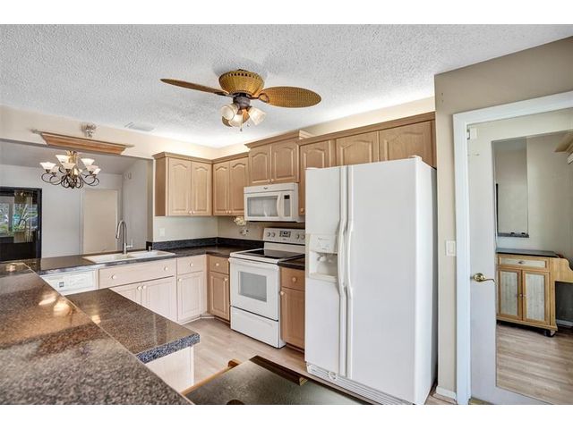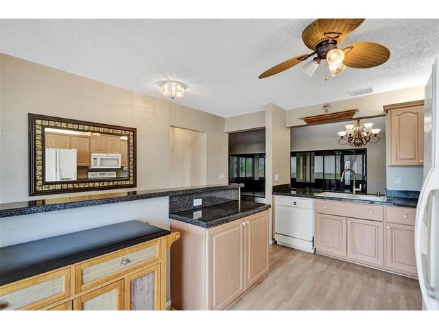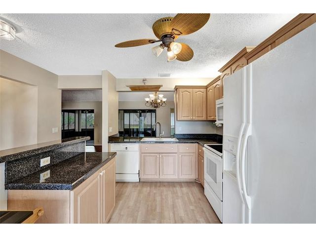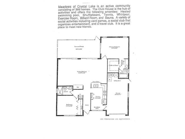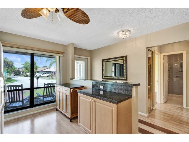 Meticulously maintained Oakwood model located in The Meadows of Crystal Lake, one of the most desirable 55+ communities in Broward County. This 2-bedroom, 2-bath home features a split bedroom plan, vaulted ceilings in the living and dining areas, a spacious family room, and an updated kitchen with granite counters, honey cabinets, and newer appliances. Laminate flooring flows throughout the living areas and bedrooms. Major updates include a roof (approx. 12 years), flat roof (2022), A/C and water heater (within 4 years), and accordion shutters on all windows except the patio. The community offers a clubhouse on the lake, heated pool, hot tub/spa, tennis courts, ping pong, shuffleboard, BBQ areas, bocce ball, gym, library, and on-site management.