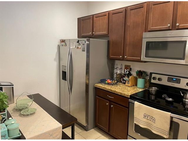 Gorgeous unit in desirable community Cobblestone. 3 Bedrooms and 3 full bathrooms (a second bedroom has a full bathroom inside!). Our gated community is very safe with internal private security 24/7. Pets welcome! This unit has 1335 sqft with great size bedrooms and a big kitchen with lots of storage, granite countertops in kitchen and bathrooms, impact windows. Located on the ground floor, this unit is just one block from the Guest House. Enjoy resort-style amenities like pool, gym, clubhouse, tot lots. Conveniently located just one traffic light to I75, near many grocery stores, golf courses, restaurants and fine dining, bars, shopping and great A-rated schools. Pembroke Gardens Mall is just 1 mile away. Built in 2013. Fee Simple HOA includes internet, cable + alarm. Move-in ready.