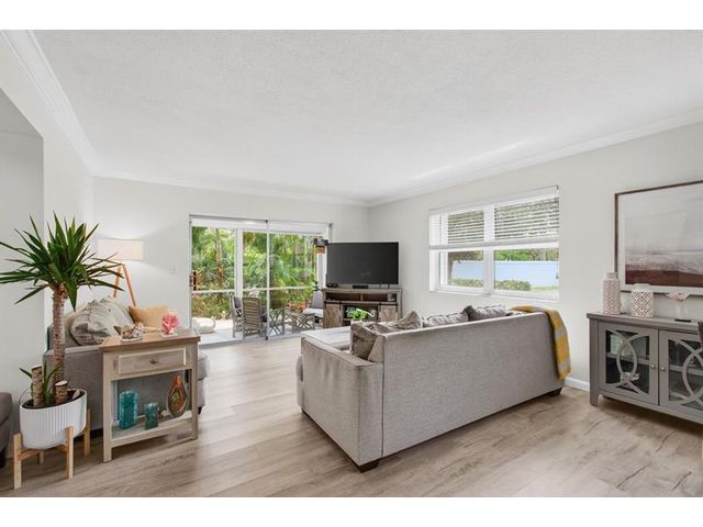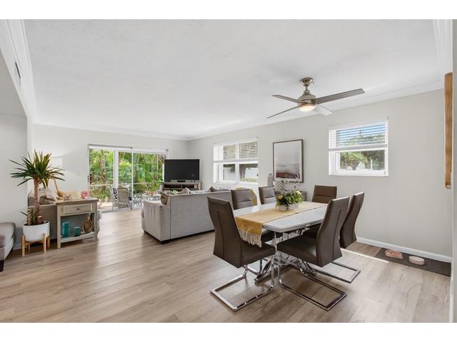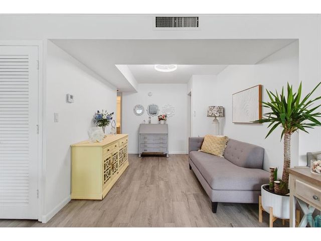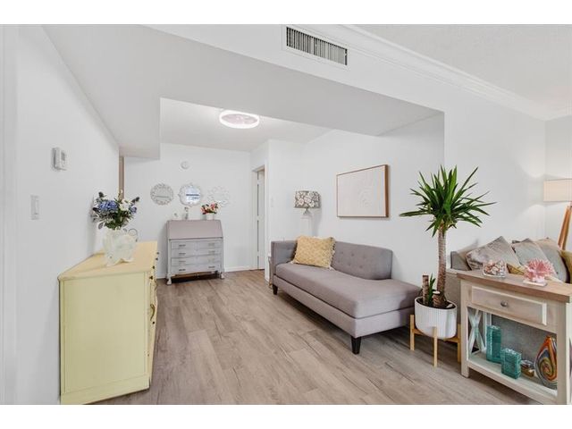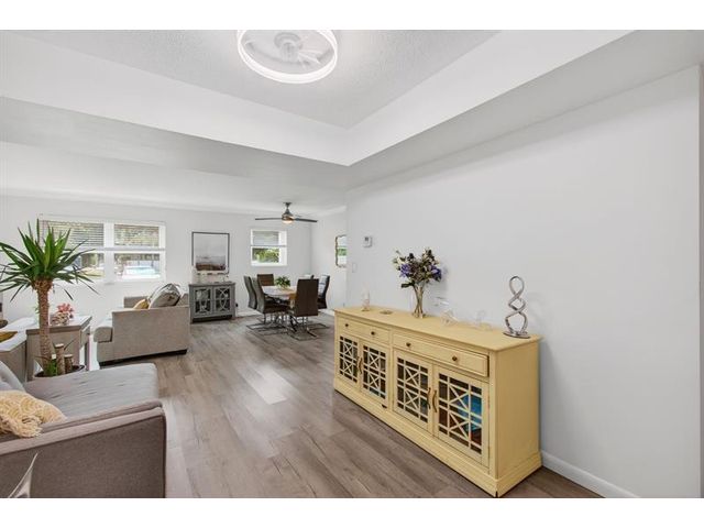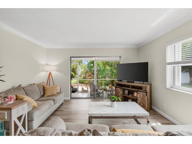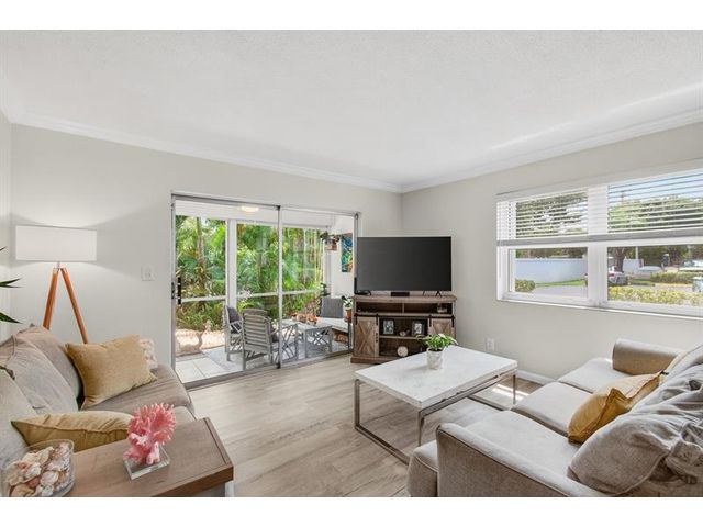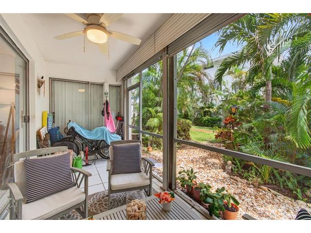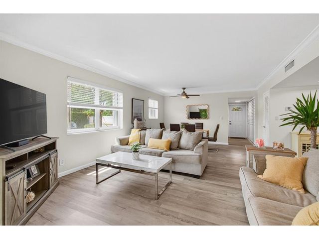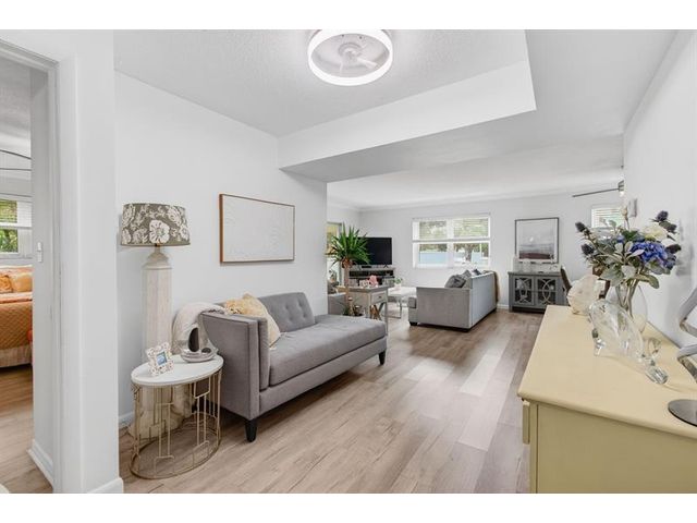 Beautiful bright corner unit in desirable East Boca Raton! Completely updated featuring 2 bedrooms plus a versatile den. Impact windows and new laminate wood flooring. Plenty of storage including a spacious walk-in closet with custom built-ins in main bedroom. Large covered screened patio surrounded by tropical foliage offers complete privacy and is perfect for relaxing. Impact windows. Rarely available covered parking is conveniently located right outside your door. There is also plenty of guest parking close to the unit. This 55+ community offers a sparkling pool and shuffleboard in a warm, friendly setting. Fabulous location—walking distance to Publix, Fresh Market, Mizner Park, and the beach!