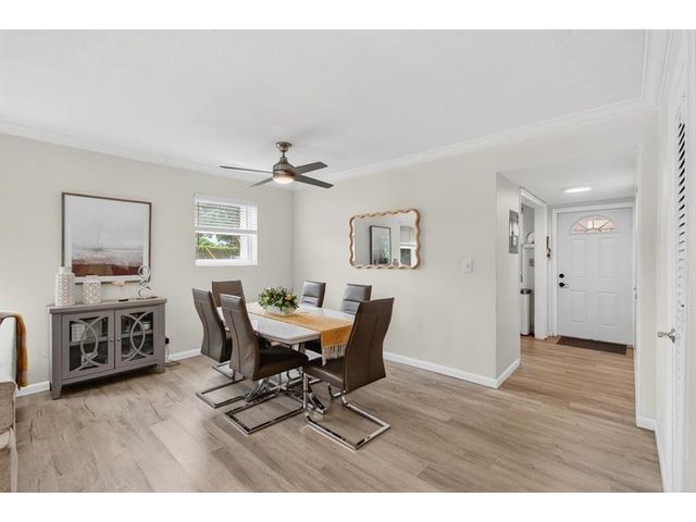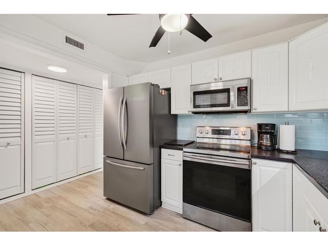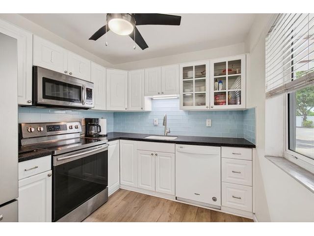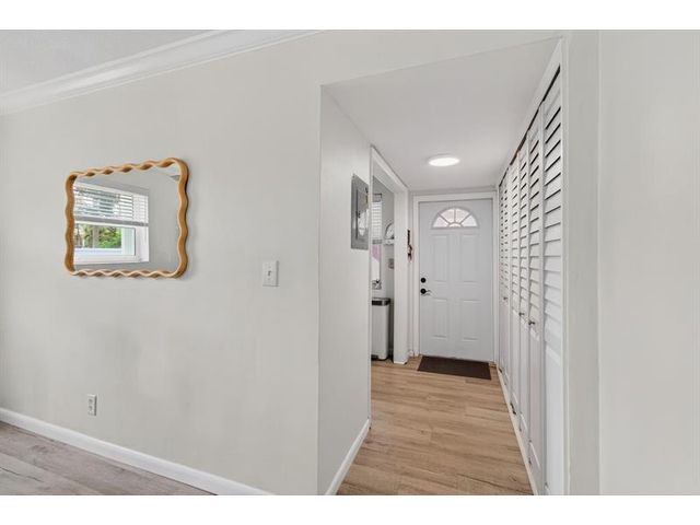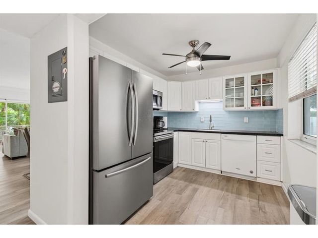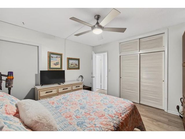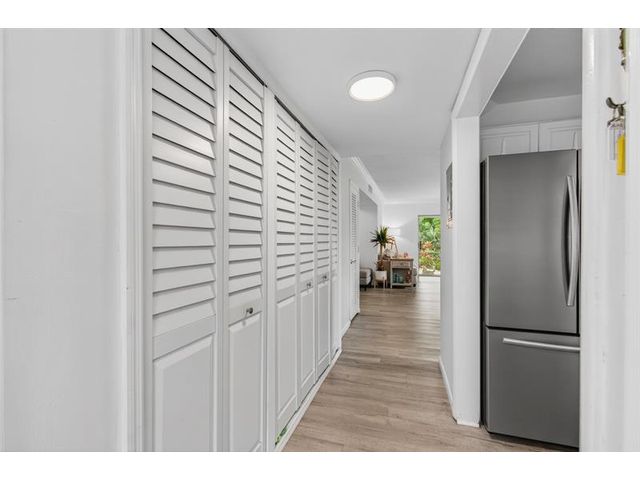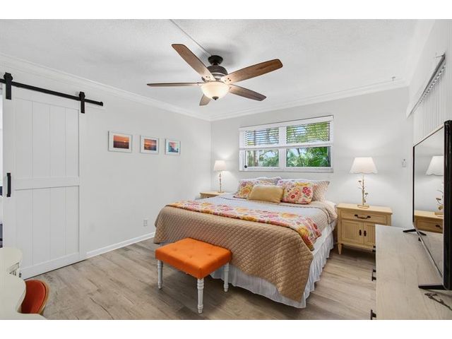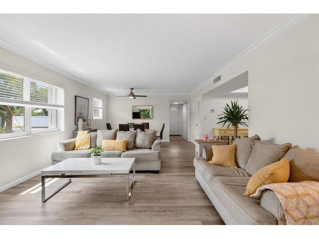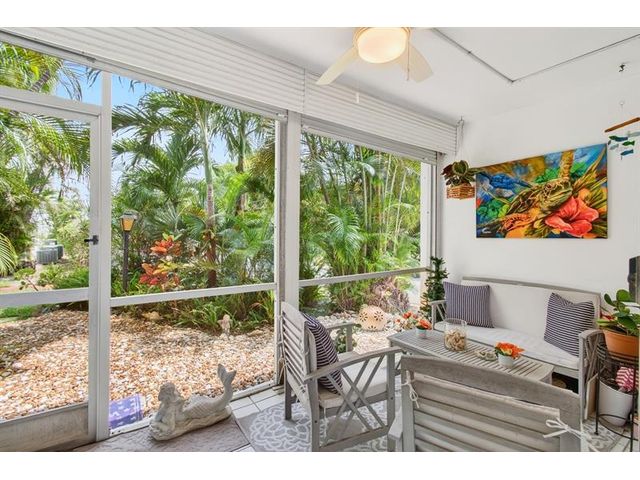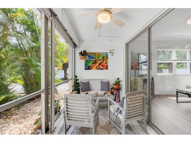 Beautiful bright corner unit in desirable East Boca Raton! Completely updated featuring 2 bedrooms plus a versatile den. Impact windows and new laminate wood flooring. Plenty of storage including a spacious walk-in closet with custom built-ins in main bedroom. Large covered screened patio surrounded by tropical foliage offers complete privacy and is perfect for relaxing. Impact windows. Rarely available covered parking is conveniently located right outside your door. There is also plenty of guest parking close to the unit. This 55+ community offers a sparkling pool and shuffleboard in a warm, friendly setting. Fabulous location—walking distance to Publix, Fresh Market, Mizner Park, and the beach!