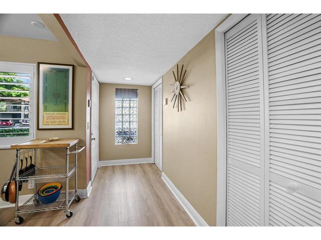 Welcome to this beautifully updated 2-bedroom, 2-bath corner condo in the desirable Racquet Club Apartments of Weston! This first-floor unit offers a bright and open layout with luxury vinyl flooring throughout and an updated kitchen with modern finishes. Enjoy peace of mind with hurricane accordion shutters, a water heater from 2021, and a well-maintained AC unit (2010). The condo is conveniently located just steps from the community pool, perfect for relaxing or socializing. Membership to the Bonaventure Town Center Club is required (Seller currently pays $325 annually) and provides access to resort-style amenities including fitness center, tennis, bowling, pickleball, and more. Excellent location near top-rated schools, parks, and major highways.