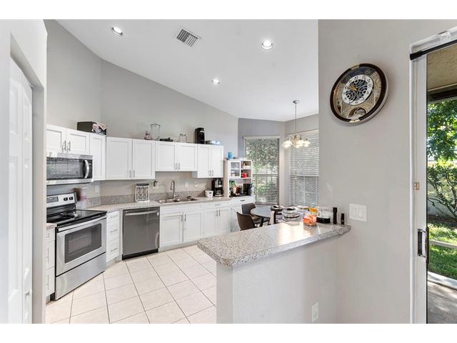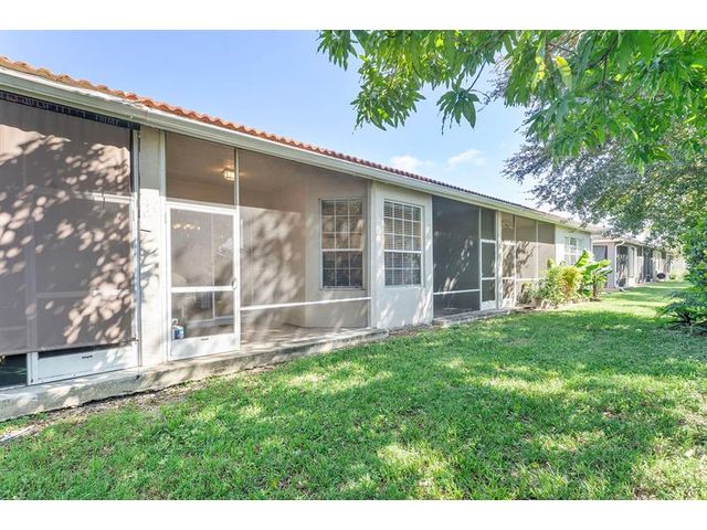 Gorgeous Villa at Fairway Isles at Regency Club available now with a recently completed new roof. The unit is renovated and upgraded. The unit has a split floor plan, with two bedrooms split by the living room and dedicated laundry room. The patio is screened in and overlooks a nice open patch of grass. The kitchen has a beautiful garden view breakfast nook, surrounded by windows to let the morning light in. The entire community is gated and the sound of birds singing echo throughout this quiet neighborhood. This property is truly move in ready, and is perfect for families wanting a safe, quiet neighborhood while still near all vital businesses.