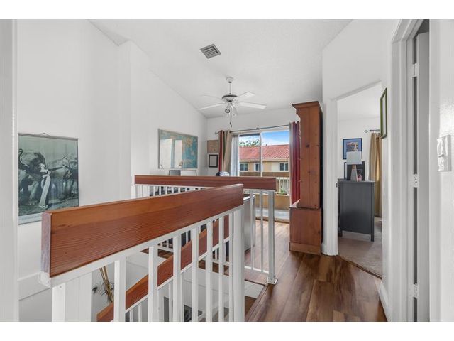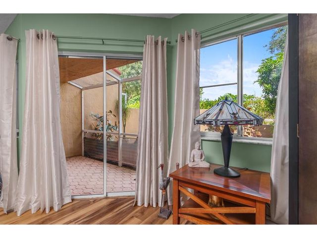 DAHLIA TOWNHOMES 2/2.5 + loft awaits you in desirable Plantation. Ideal floor plan with 2 bedrooms and 2 baths upstairs and a powder room downstairs for guests. Light floods the first floor with a warm feel for a gracious living space. Gourmet eat-in remodeled kitchen, peaceful & serene back patio overlooking a lush garden. Exterior storage room. Hardwood floors throughout the first floor and loft area upstairs. Accordion storm shutters throughout; 2 designated parking spaces at your front door; playground; low monthly maintenance $400. Pet friendly community. NEW ROOF 2026 pre-paid in full by Seller; Minutes to Central Park, shopping, restaurants, Sawgrass Mall, movie theatres, hospital, houses of worship etc. Easy drive to the airport and more.