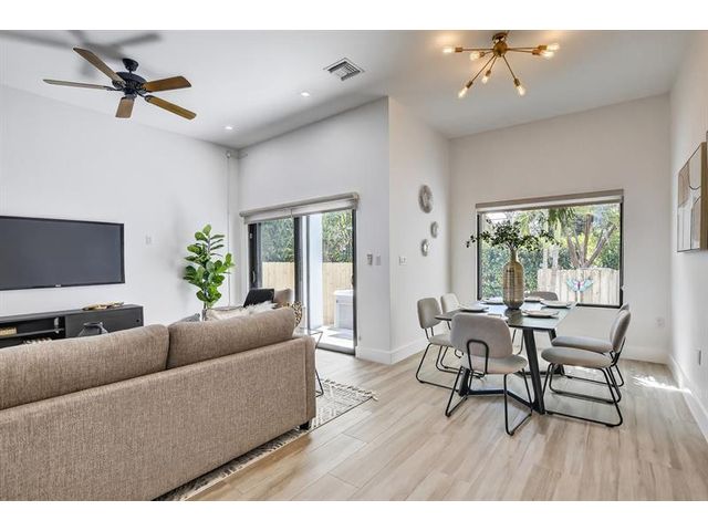 Built in 2020, this contemporary 3/2.5 townhome spanning 2,500 sqft blends modern comfort with urban convenience in desirable Sailboat Bend. Soaring ceilings, impact windows, and an open layout filled with natural light create an inviting atmosphere. The kitchen features sleek cabinetry and stainless steel appliances flowing into spacious living and dining areas. Upstairs offers a versatile loft plus bedrooms, including a master suite with dual walk-in closets and a spa-inspired bath. Enjoy outdoor living on a private patio with a new Caldera Spa saltwater hot tub. Meticulously maintained by owners who lived only seasonally in the home. Minutes to Las Olas, Downtown, beaches, and the airport.