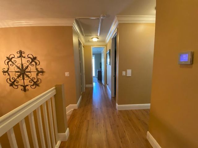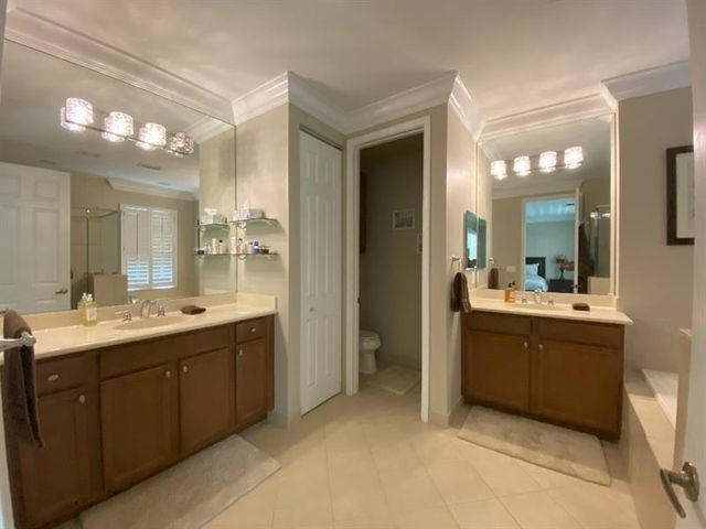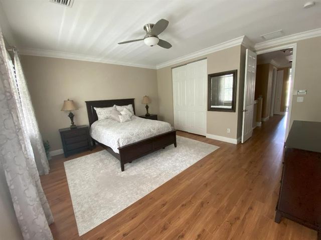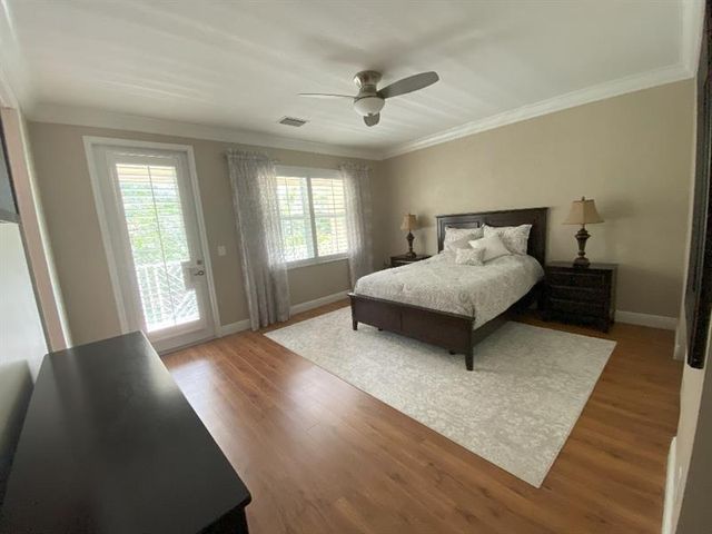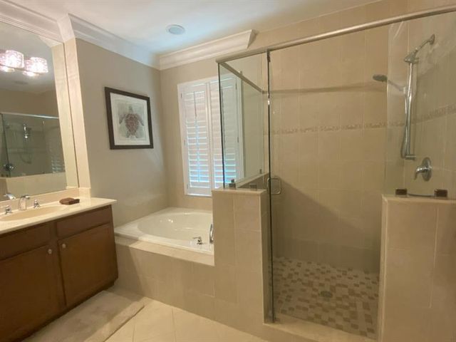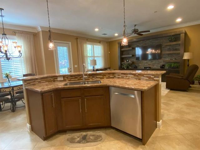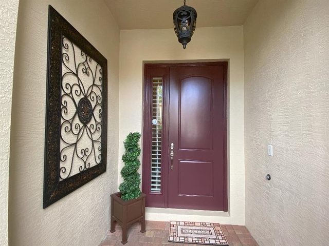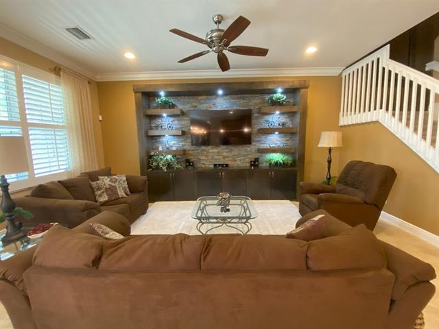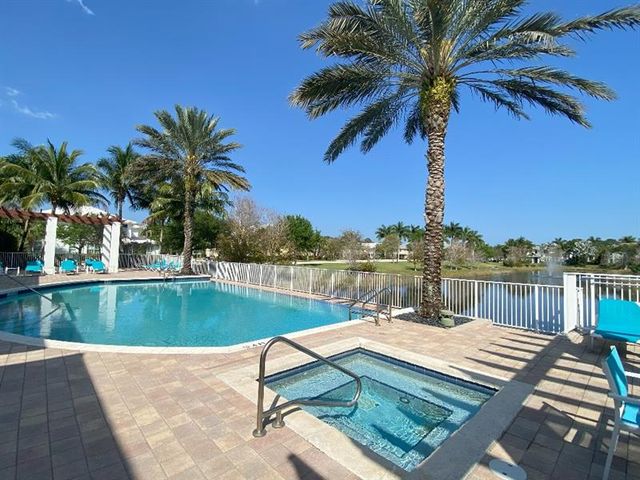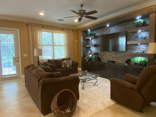 Beautiful, cared for Hampton Cay Townhome in great gated location close to turnpike, I-95, shopping and dining. 3 large bedrooms and 2 1/2 baths, impact glass windows, doors, and metal roof. Screened porch on lower level and all 3 bedrooms have a private balcony. Primary bedroom with two walk-in closets and private bath with two separate vanities, shower, and separate tub. Newer Bosch appliances in Kitchen with granite countertops, pantry and large storage area under stairs. Crown moldings and plantation shutters throughout. Living room with built in entertainment center. Tile downstairs and wood laminate floors upstairs. Epoxy finished garage floors, and built in storage cabinets. Community has clubhouse, fitness center, heated pool and spa, 3 lakes, sidewalks. Furniture Negotiable