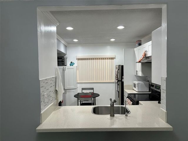 Do not miss this stunning fully remodeled condo. 1 bed, 1.5 bath unit . This home features a modern kitchen with quartz countertops, stylish backsplash, stainless steel appliances, and a convenient snack bar that opens to the spacious living area. Enjoy elegant porcelain floors throughout, abundant natural light, and your own private balcony for relaxing or entertaining. Additional upgrades include a newer A/C, updated electrical panel, new doors, and a brand-new roof currently being installed. Truly move-in ready ! Located in a well-maintained 55+ golf course community with a 6-ft deep pool, shuffleboard area, and serene surroundings. Conveniently close to shopping, dining, and major highways. This gem won’t last long — schedule your private showing today!