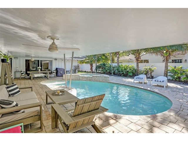 True 4 bedroom, 3 bath pool home in Old Coral Ridge neighborhood of East Fort Lauderdale. Bayview school district. Spectacular vaulted ceilings in Living room overlooking the pool. High ceilings in most rooms. Separate family room off the kitchen. True 2 car garage. Inside laundry. All Hurricane Impact windows and doors. Marble floors thruout. Major updates including updated electric and PVC plumbing (partial), New AC and 2017 roof. Large roof overhang for outdoor shade. Southern facing backyard for all day sun on the pool. Spacious yard. Pool recently done with new Diamonbrite. This is the one!