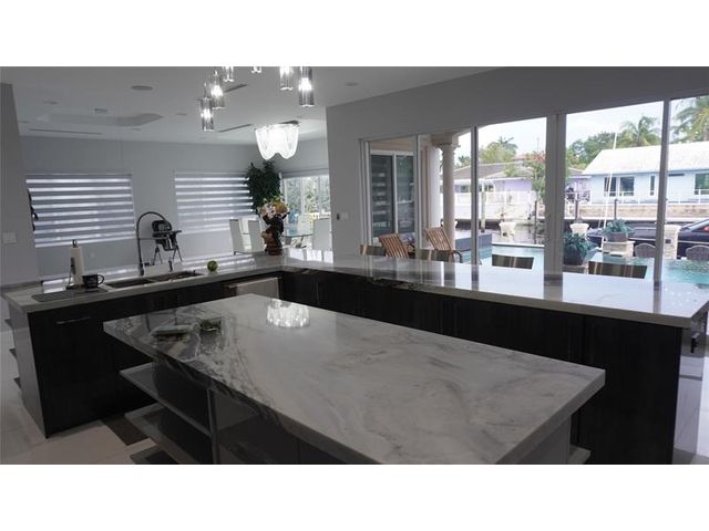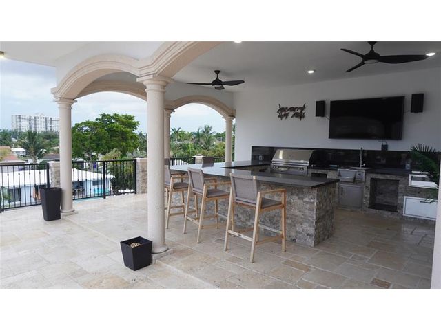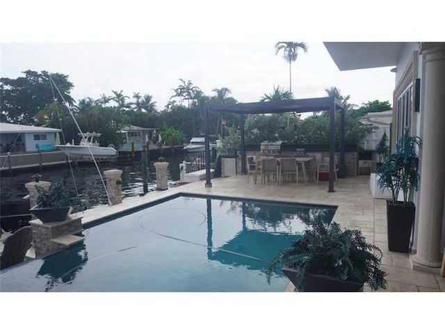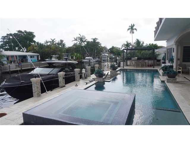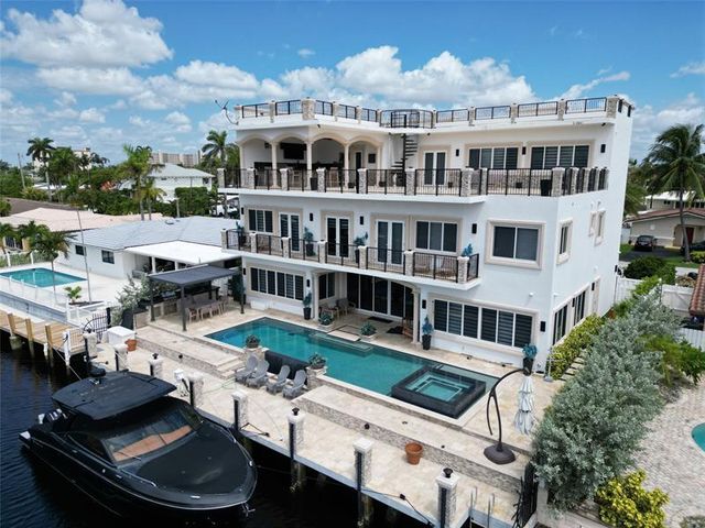 Completed in 2023, this contemporary waterfront home brings everyday resort living to Pompano Isles with 75' on a wide canal and fast ocean access. Four-level, all-concrete construction, including concrete slab roof delivers quiet luxury and peace of mind. ~5,850 SF of glass-wrapped living with soaring volumes, and seamless indoor–outdoor flow. Chef’s kitchen with custom Italian cabinetry, Wolf appliances, built-in coffee bar and oversized island opens to a resort pool/spa, summer kitchen and dock. 4 bedrooms/5 baths arranged for privacy, including a serene primary suite with spa bath. 3rd floor outdoor kitchen, wet bar and entertainment area to enjoy. Impact doors/windows, built in bar, 2-car garage and circular drive. Minutes to beaches & dining.