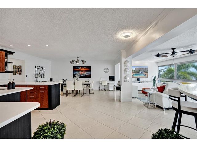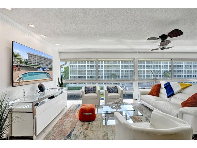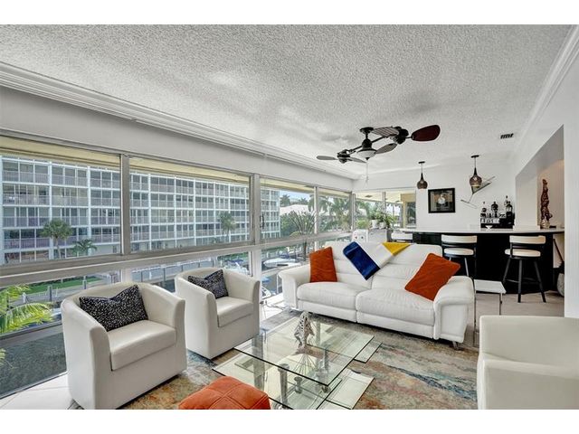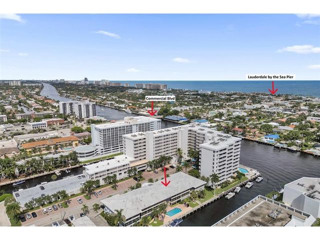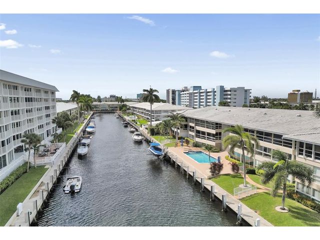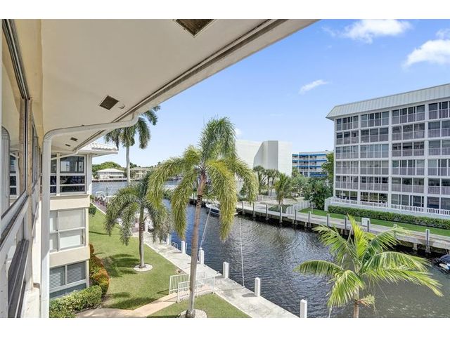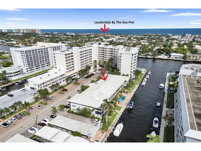 Completely open & very spacious 2 Bed, 2 Bath Waterfront condo. Boutique style building only 3 stories. This is a Corner unit, located on the Top floor giving ultimate privacy. Floor to ceiling windows give an incredible view of the canal & the main intercoastal. Large floor plan offers 1,350 Sq Ft and ample natural light. Sleek kitchen with modern appliances. Built in bar great for entertaining. Washer/dryer in the unit + Additional storage. Bldg is finishing updates including: concrete restoration, painting, refurbished pool area & more. All assessments paid in FULL. HOA fee includes exterior insurance/wind/hurricane, water/sewer/trash + more. Assigned parking space. Elevator in building. Walk to Lauderdale-by-the-Sea, enjoy restaurants & the beach. Boat dockage available for rent.