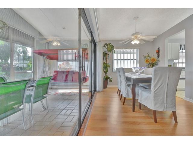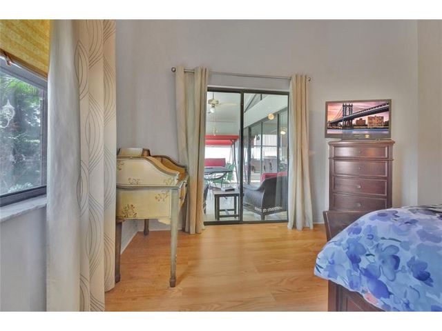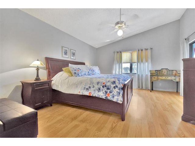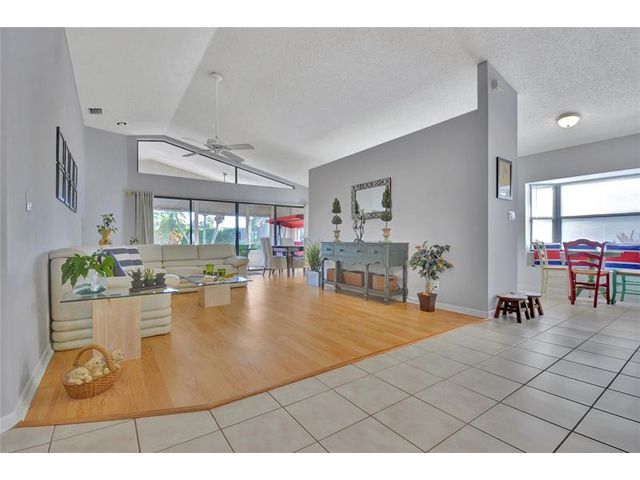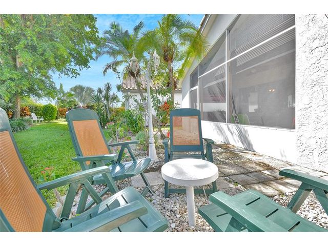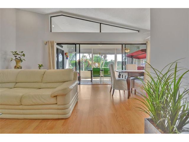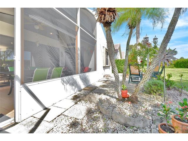 55+ Community - Discover this beautifully maintained 3-bedroom, 2-bath Lakeridge home, where comfort meets connection. Vaulted ceilings and a skylight fill the open layout with natural light, illuminating warm laminate floors throughout. The kitchen shines with sleek black lacquer countertops, double stainless sink, Frigidaire appliances, and abundant cabinetry. The spacious primary suite offers private patio access, dual vanities, and a generous walk-in closet. Relax on the screened, covered patio overlooking lush garden views. Additional features include a 1-car garage, 2022 A/C, 2018 roof, and low $295 HOA covering cable, lawn, and exterior care. Minutes to beaches, shopping, and dining — a serene retreat with timeless Florida charm.