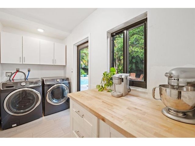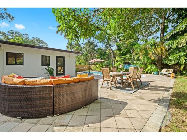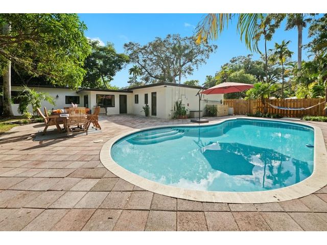 TROPICAL PARADISE. Rare 4/3, 2300 sf pool home on beautiful 13,000 sf lot. Lot features a heated 22 x 15 pool, an 800 sf paver patio, mature oak, palm, and fruit trees, a one car garage and a 55 x 21 driveway. Recently remodeled home features modern kitchen with quartz counters, plank vinyl flooring throughout, updated bathrooms, impact windows and a 2021 roof. Property has easy access to 95, 595, the turnpike and the airport. Downtown, Las Olas, and the beach are a 15-20 min drive.