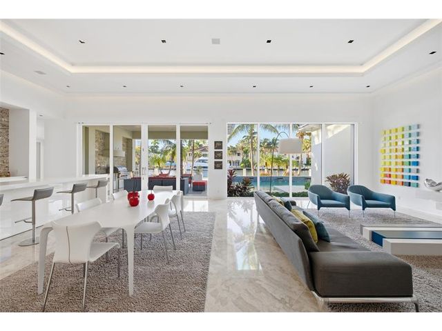 This custom built single-story, waterfront residence designed by Randall Stofft and built by Seppala Homes showcases a thoughtfully planned open layout. With high end finishes, 14’ ceilings, sleek marble Chef’s kitchen, library/den, dedicated primary wing, three private bedroom suites and floor to ceiling impact glass which flood the interiors with natural light. Enjoy seamless indoor-outdoor living with covered loggias, alfresco dining and summer kitchen with 95’ of waterfront on a 150’ wide canal. Boater’s will appreciate the new 25,000 lb boatlift, concrete dock and immediate Port access to the Ocean. Located in the exclusive guard-gated community of Harbor Beach offering both a private beach club and marina. Conveniently situated near all major travel corridors.