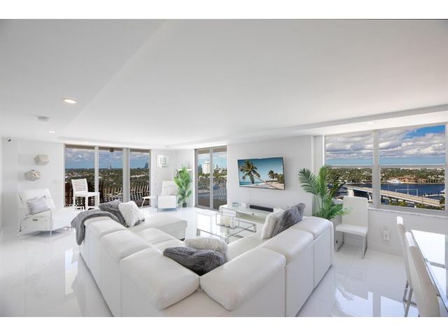 Stunning views of North and South of the Intracoastal Waterways, the spectacular Venetian pool, Atlantic Ocean, City Skyline and mind blowing gorgeous sunsets from this large wrap around balcony. See a parade of yachts, the annual Air Show, Boat Show and Boat Parade. Meticulously and beautifully renovated, has hurricane impact doors/windows, extra storage area and internet and basic cable are included in the low monthly maintenance fee. The Venetian is a "Resort style" condominium on Las Olas Beach with a large heated pool, spa/hot tub, tiki bar, library and lobby with free wifi, 24hr security, ping-pong, billiard, a large fully equipped 24 hrs fitness center, 6 large bbq's grills and outdoor dining areas. Dockage as available! These don't come on the market often. A must see!