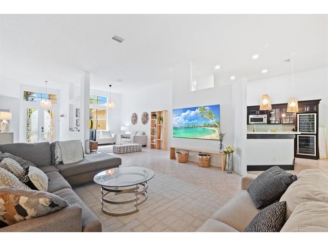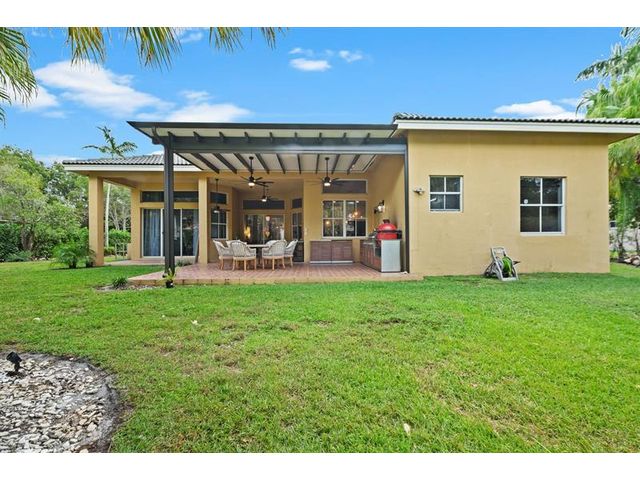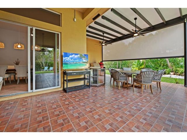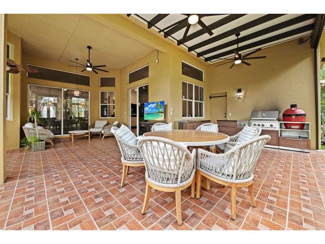 Welcome to this beautifully designed 5-bedroom, 4.5-bathroom single-story home located on a corner lot. Inside, you’ll find an open-concept layout perfect everyday living & entertaining. The kitchen flows seamlessly into the dining & family rooms, creating the heart of the home. Each bedroom offers generous space, while the primary suite features a newly remodeled bathroom. Outside, you’ll find an oversized covered patio w/ a remote-controlled screen, ideal for relaxing or hosting guests year-round. Enjoy cooking & entertaining w/ the portable outdoor kitchen, featuring a built-in grill & a Green Egg smoker. The community features resort-style amenities including a pool w/ water slide, mini putt-putt course, playground, basketball court, tennis & pickleball courts, and top-rated schools.