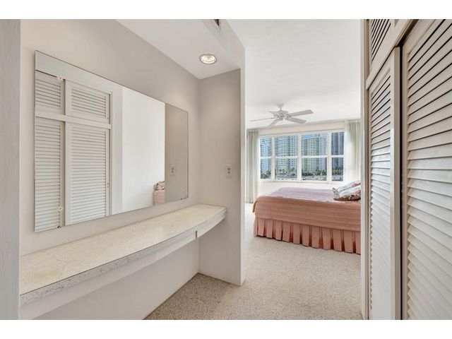 Corner residence with direct ocean views. Ready for your finishing touches. Spacious 2 bed, 2 bath with tons of closet space. Kitchen features granite counter tops, clean cabinetry and working appliances. Amenities include HUGE heated pool, bocce ball court, 24/7 security, fitness center, extra storage, community room with many activities PLUS a clubhouse on the IntraCoastal for this building only. Close to everything! Restaurants, retail, beach, golf, entertainment. 55+ community, cash only. Building is in excellent physical and financial condition. Maintenance included water, sewer, trash, basic cable and high speed fiber optic internet.