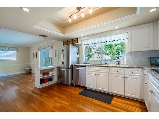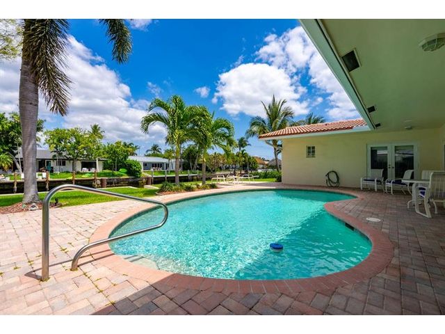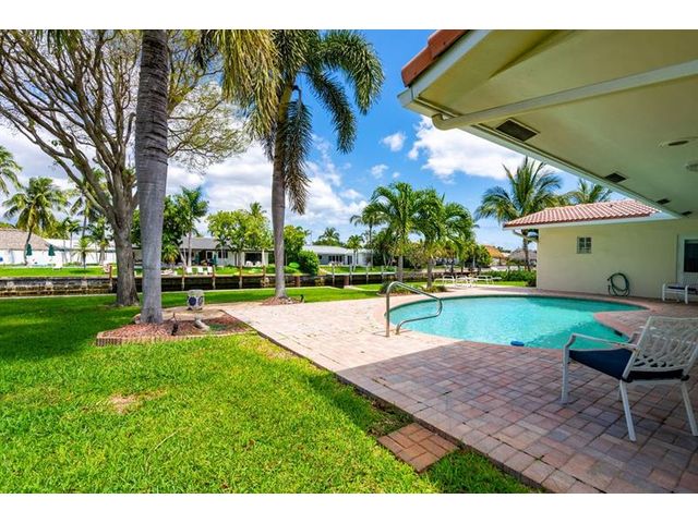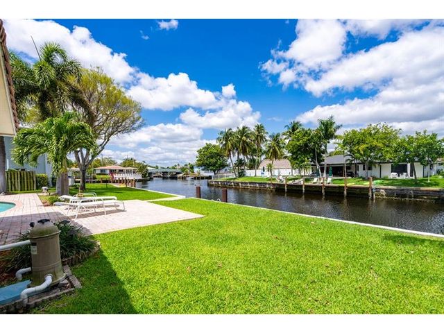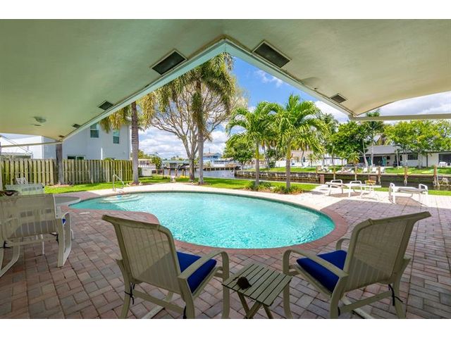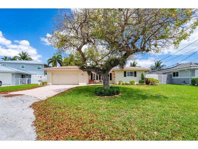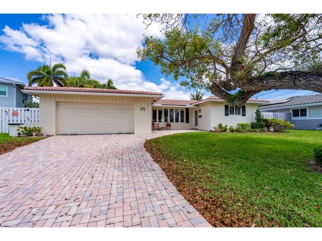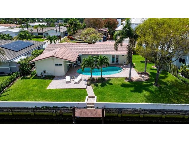 Oversized lot with great views! Original owner home with 95.3 feet of waterfront. This cozy 3 bed 2 bath home is located on a cul-de-sac in High Ridge, surrounded by newer construction homes. The home feels like it lives larger than the living area square footage and there is room to add an office in addition to the 3 bedrooms Impact glass except for one small glass block window in the primary bath. The yard is huge with plenty of room for entertaining, play, or your pets. 2 car garage with a half bath in it. Ocean access with one fixed bridge that has 12 feet of clearance. This is the charming home you have been searching for!