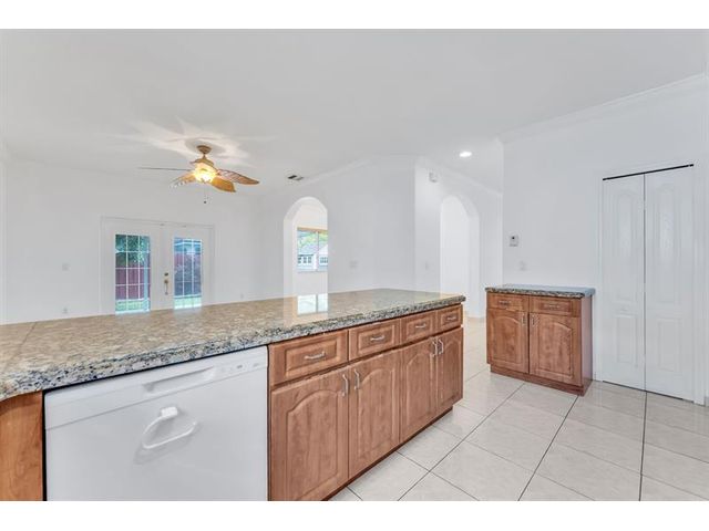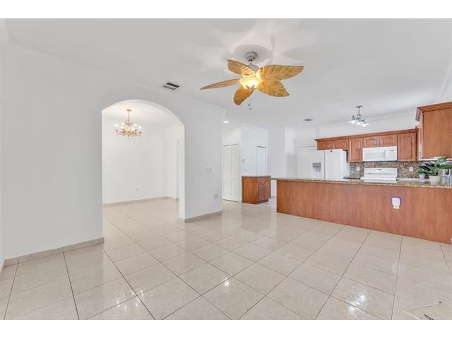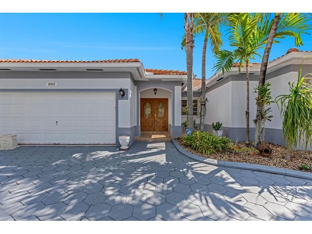 Located in the desirable area of Miami Lakes, inside Genesis Oak Gardens community with (No HOA). This spacious home offers a welcoming layout with beautiful arched entryways that add charm throughout. The open kitchen features plenty of cabinet space and connects seamlessly to the family room, ideal for gatherings and entertaining. Enjoy a separate dining room, living room, and three generously sized bedrooms. The primary suite includes two walk-in closets and a spa-like bath with a soaking tub, bidet, and elegant glass block windows. Step outside to a large fenced backyard with a tiled patio, outdoor kitchen, and room for a pool. This outdoor space is the perfect setting for relaxing or hosting friends and family. The home is ready for you to come in and add your own personal touches.