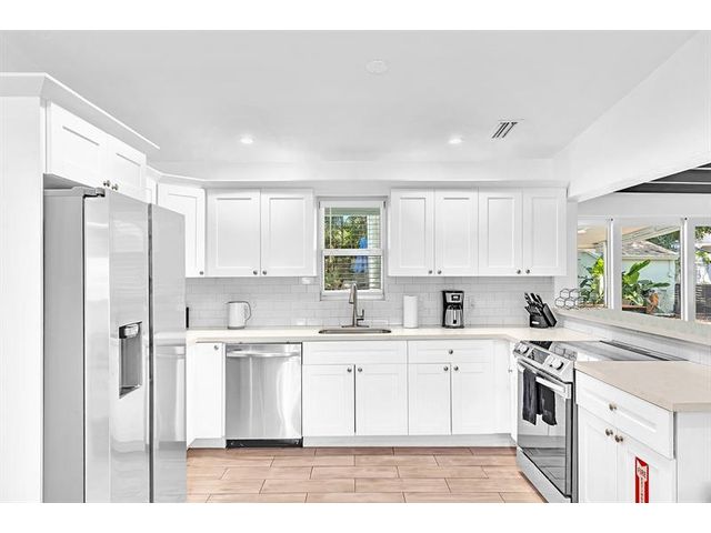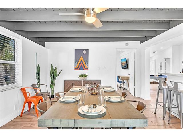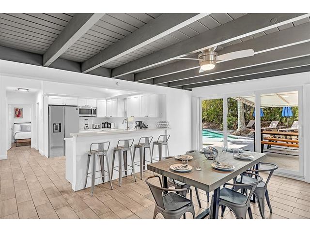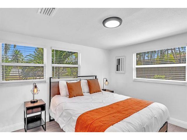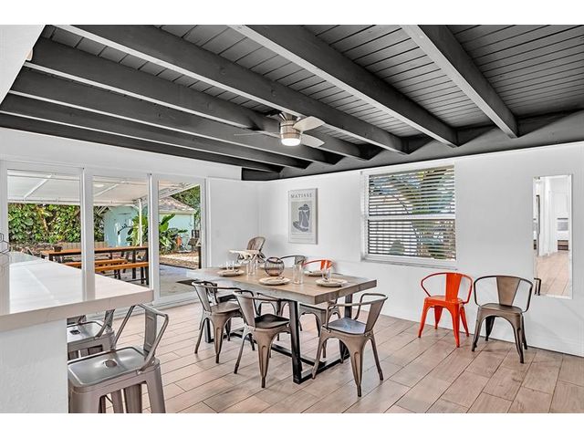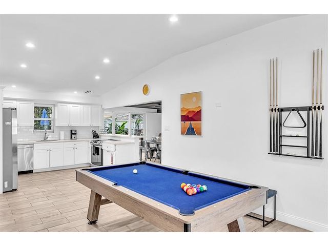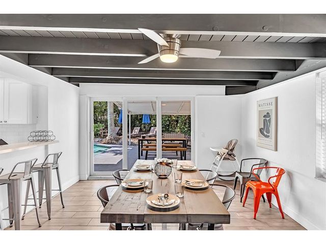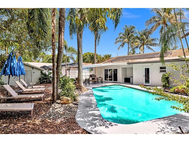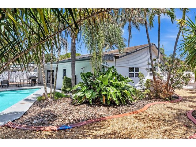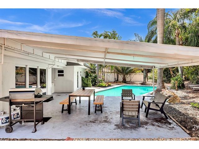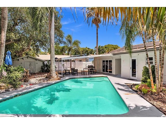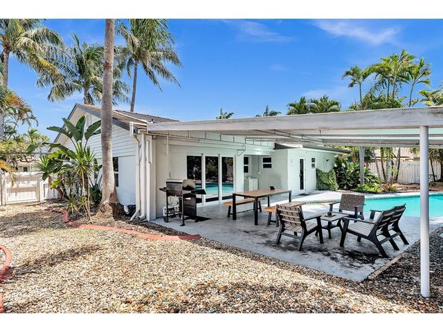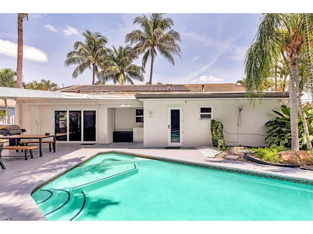 Welcome to tropical living in this beautifully updated East Fort Lauderdale home on an expansive 10,000+ sq. ft. double lot. The open layout features hurricane-impact windows and doors, recessed lighting, and stylish tile flooring throughout. The kitchen is enhanced with quartz countertops, stainless appliances, and custom cabinetry. Two flexible rooms offer options for a fourth bedroom, office, or guest suite. Step outside to a private fenced yard with vibrant landscaping, a solar-heated pool, and a covered patio perfect for relaxing or entertaining. Offered fully furnished and move-in ready—ideal for living, vacationing, or investment.