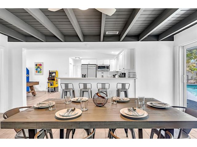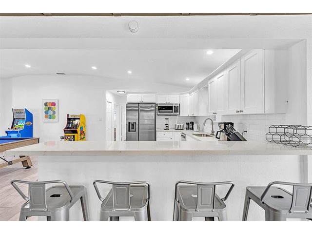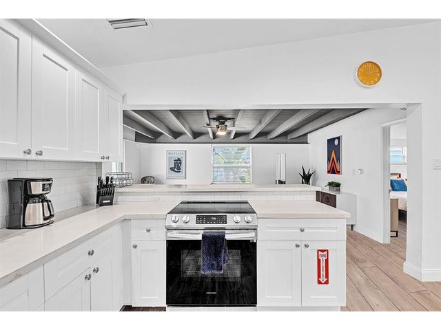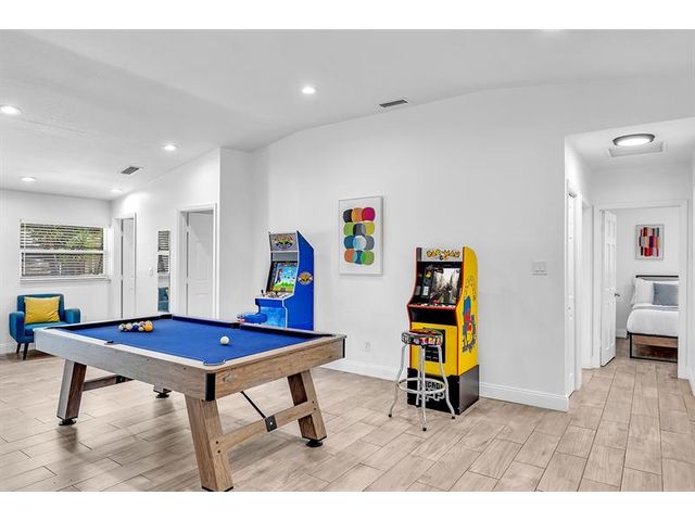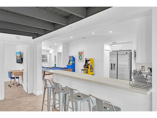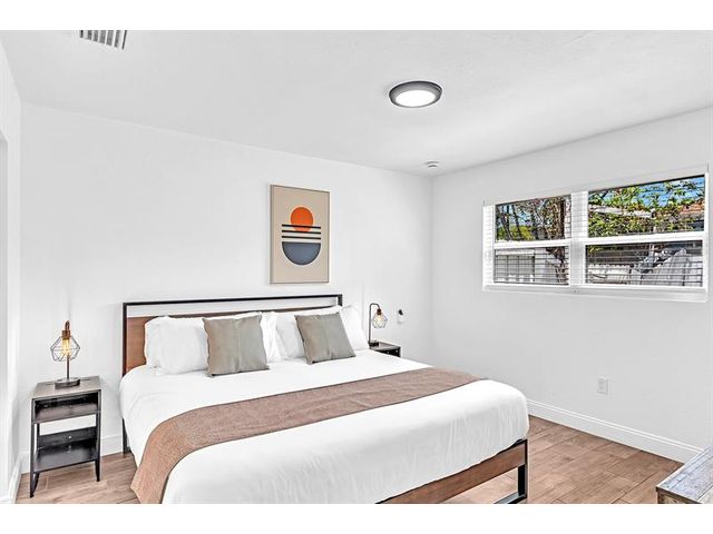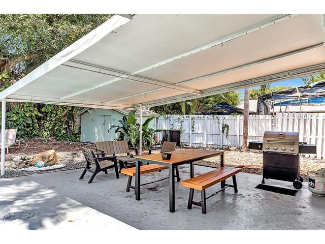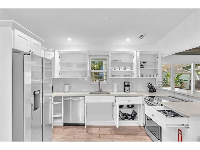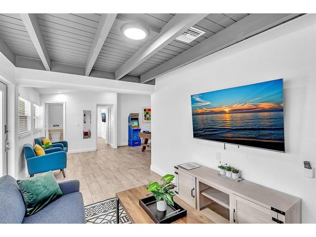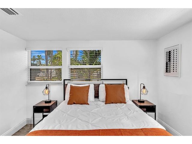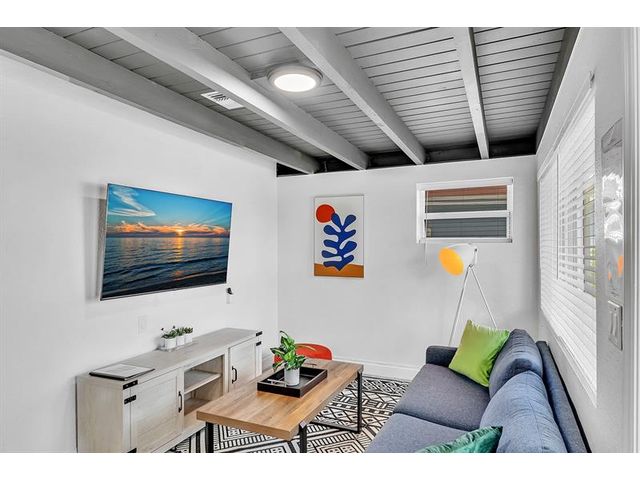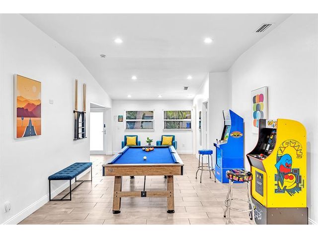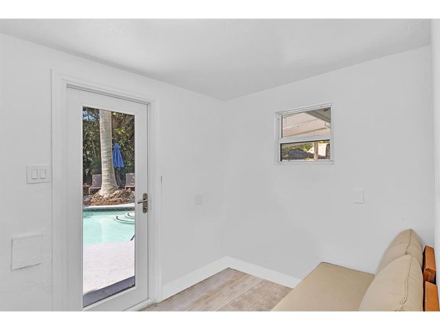 Welcome to tropical living in this beautifully updated East Fort Lauderdale home on an expansive 10,000+ sq. ft. double lot. The open layout features hurricane-impact windows and doors, recessed lighting, and stylish tile flooring throughout. The kitchen is enhanced with quartz countertops, stainless appliances, and custom cabinetry. Two flexible rooms offer options for a fourth bedroom, office, or guest suite. Step outside to a private fenced yard with vibrant landscaping, a solar-heated pool, and a covered patio perfect for relaxing or entertaining. Offered fully furnished and move-in ready—ideal for living, vacationing, or investment.