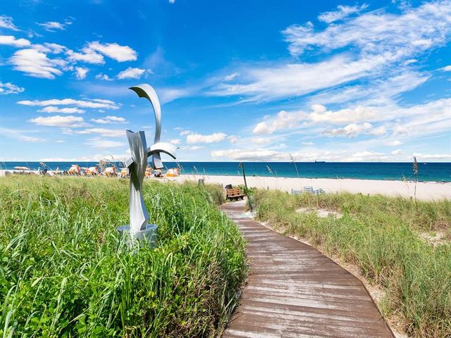 Refined Coastal Living with Ocean Views. Discover the epitome of beachfront elegance in this expansive 1BR, 1.5BA residence. Designed with a modern open floor plan, this sophisticated condo is framed by floor-to-ceiling windows and sliding glass doors capturing vistas of the Atlantic Ocean and lush tropical foliage. Features include an updated kitchen with quartzite countertops, induction cooktop, high-end appliances, and a custom built-in with Murphy bed. The oversized glass balcony creates effortless indoor-outdoor living. Boutique building with 63 residences offers a private beachfront pool, direct beach access, and fitness center. Minutes to premier dining, nightlife, Las Olas & FLL Airport. Sq. Ft. per BCPA.