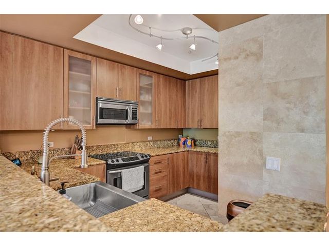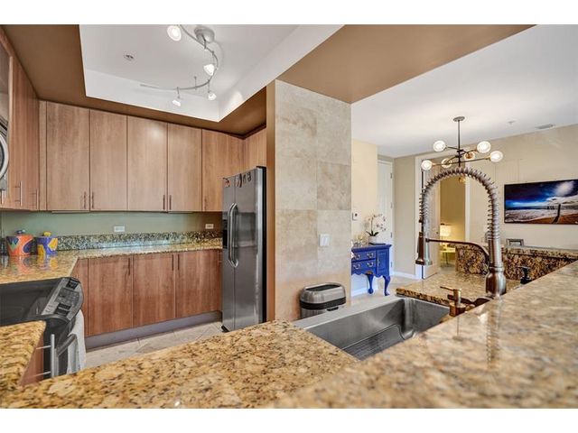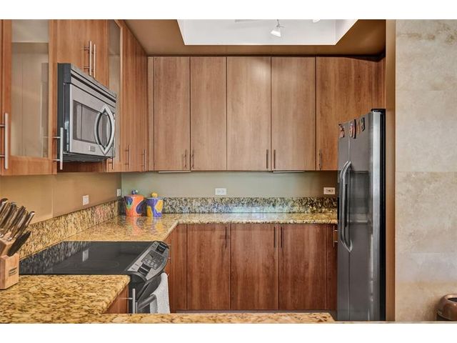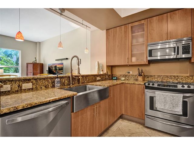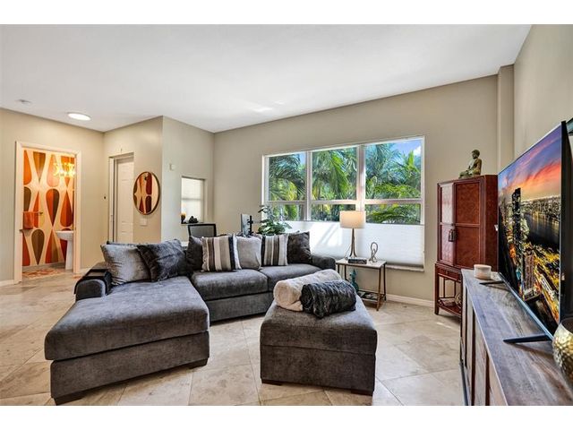 Rare east facing townhome located in Wilton Station. A gated pet friendly community with dogs up to 75 lbs each (non-aggressive). Two bedroom, flex den-office with two and a half baths. Stainless steel appliances, and granite countertops. Underground parking space. New AC, washer, dryer, dishwasher and water heater. Custom Hunter Douglas window treatments. Balconies off each bedroom. Retractable 'Phantom' screens off front door and sliding glass impact doors. Unit does not face any other buildings-nice and private. Resort style pool. Clubhouse with fitness center, party rooms, catering kitchen, media room & conference room. HOA includes internet, cable, insurance, fully funding reserves, water, sewer, trash, pool, and guard house. Close to 'The Drive', beaches & highways.