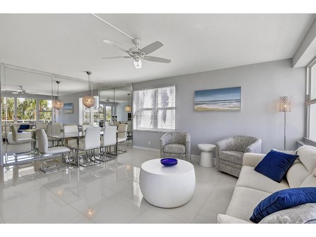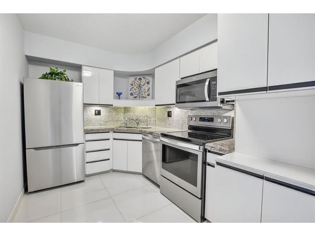 THIS BEAUTIFULLY UPDATED, CORNER APARTMENT, IN MINT CONDITION. HAS EXTRA WINDOW IN DINING AREA THAT OPENS INTO SPACICOUS BRIGHT LIVING ROOM, OVERLOOKING WELL MAINTAINED GARDEN GROUNDS. RENOVATED KITCHEN FEATURES SLEEK CABINETRY, GRANITE COUNTERTOPS, ALL STANLESS STEEL APPLIANCES AND A NEW REFRIGERATOR. NEWLY INSTALLED UNDER-COUNTER RECESSED LIGHTING HIGHLIGHTS THE COUNTERS. BOTH SPACIOUS BATHROOMS HAVE BEEN FULLY UPDATED WITH CONTEMPOARY FINISHES, BOTH OFFER EASY ACCESSABLE WALK-IN SHOWERS. THIS UNIT HAS BEEN FRESHLY PAINTED AND FINISHED WITH ELEGENT 24-INCH PORCELAIN TILE FLOORING THROUGHOUT, GIVING IT A CLEAN, COHESIVE LOOK. BUILDING HAS JUST COMPLETED MAJOR CONCRETE RESORATION WITH INSTALLATION OF GLASS BALCONIES. RESIDENTS ENJOY RESORT-STYLE AMENITIES WITH JUST A SHORT WALK TO BEACH.