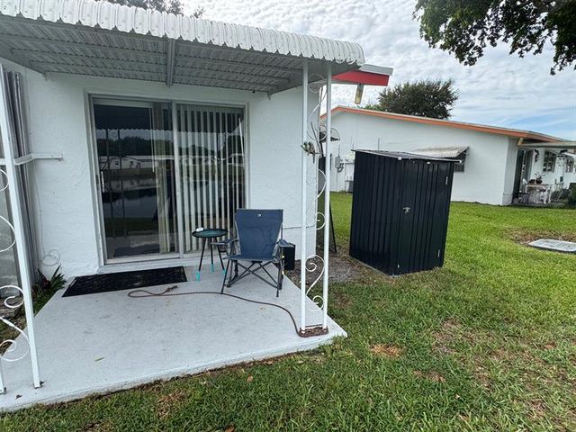 Enjoy this beautiful 2 bedroom, 2 bath lake view unit in this 55+ community in Plantation. Large porch area in the front that can be used for hanging beautiful plants or just sitting and enjoying a nice cup of your favorite refreshment while looking at the view of the area. Appliances included are refrigerator, stove, dishwasher, disposal, washer and dryer. This unit has an open concept living and formal dining area with tile flooring. The eat in kitchen is perfect for casual dining. Both bedrooms have carpeting (which will be replaced) and walk-in closets for ample storage and space. Master bedroom has an excellent view of the lake to wake up to each morning. The amenities include 2 pools, clubhouse, tennis courts, fitness center, shuffleboard and courtesy bus for your convenience.