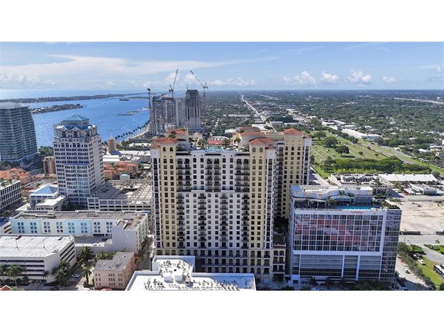 Experience vibrant downtown living in this 2-bedroom, 2-bath residence at the coveted Two City Plaza. This light-filled condo boasts soaring ceilings with elegant crown molding, floor-to-ceiling windows, and an open layout perfect for both relaxation and entertaining. The kitchen features sleek finishes and stainless steel appliances, combining style and functionality. Retreat to the primary suite with a spa-inspired bath and walk-in closet, or unwind on your private balcony overlooking the courtyard with western exposure for stunning sunsets. Enjoy resort-style amenities including a rooftop pool with ocean views, fitness center, sauna, movie theater, valet, and 24-hour concierge- ideal for both end-users and investors.