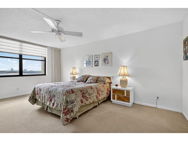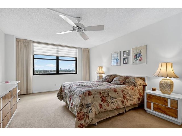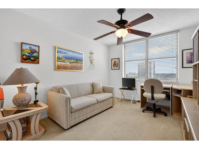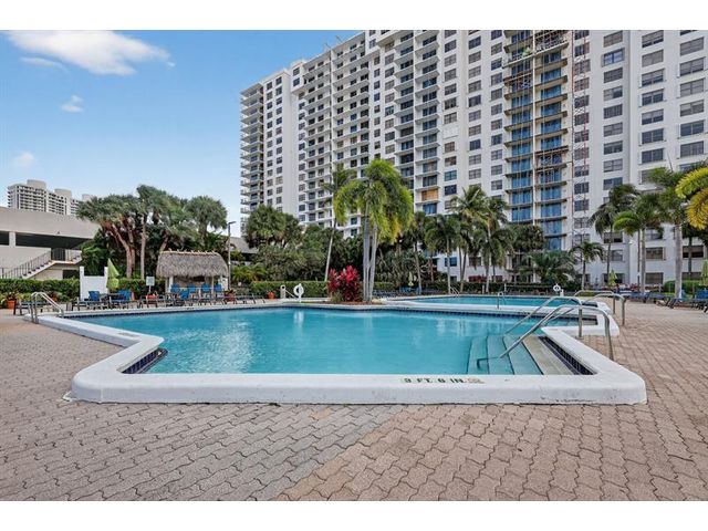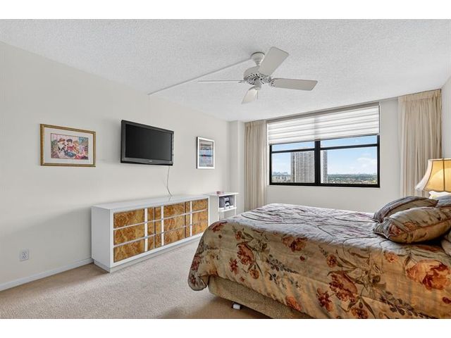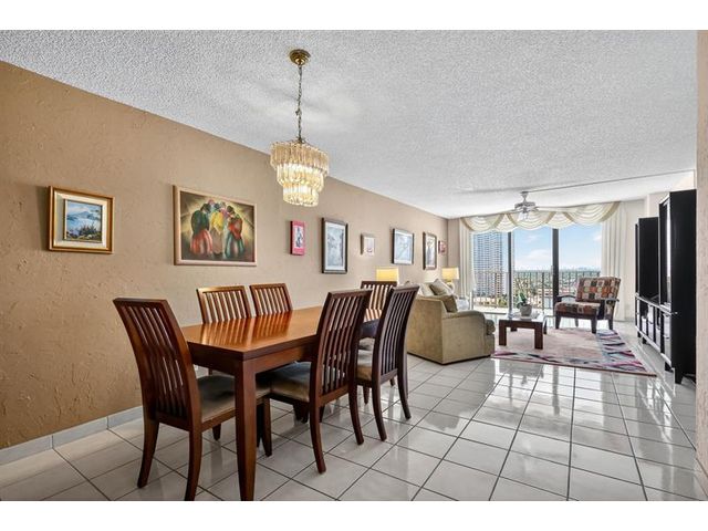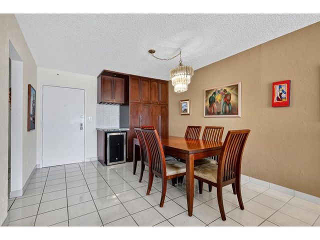 Spacious 17th-floor unit with breathtaking views! The dining area features a built-in cabinet with a wine cooler and ample space for dining utensils and fine china. The recently remodeled kitchen boasts granite countertops, a modern double sink, and brand-new stainless steel appliances. The unit is tiled throughout, with carpeting in the bedrooms, a custom walk-in closet, and plenty of additional closet space. Current 40-year renovation work is going on to update windows, sliding doors, and glass balcony railings. Amenities include 24/7 guard-gated security, valet parking, two pools (one heated), a fitness center, and courts for tennis, racquetball, and soon basketball, plus a hot tub. Maintenance covers enhanced basic cable, water, pest control, and more. Min 680 Credit Score