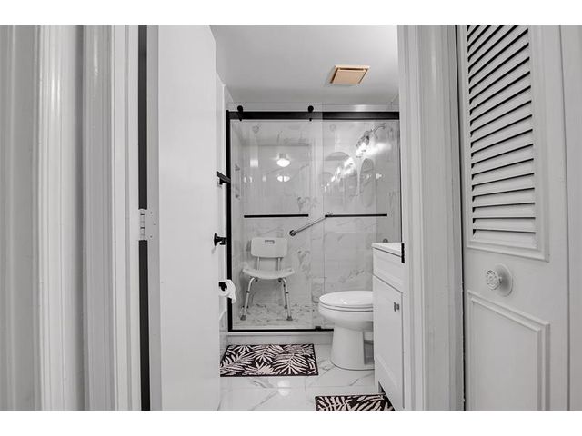 Beautiful 2B/2B totally renovated and updated unit in Palm Lakes. New Front door, New ceramic tile throughout the unit. Kitchen and Bathrooms are tastefully updated for the new owner! AC recently serviced with records. Washer-Dryer in unit. Generous sized master walk in closet. Elevator in building. Seller to pay current assessment in full at closing. One deeded parking spot with plenty of guest parking for your friends and family. Pets allowed, dogs up to 25lbs. Min. credit score 650. No commercial vehicles. Any vehicle that fits in a parking spot is acceptable. 55+ community. Monthly condo fees are paid quarterly.