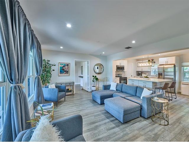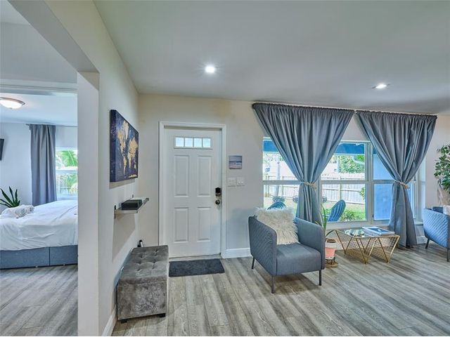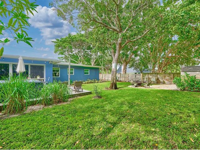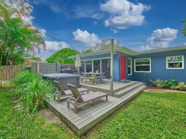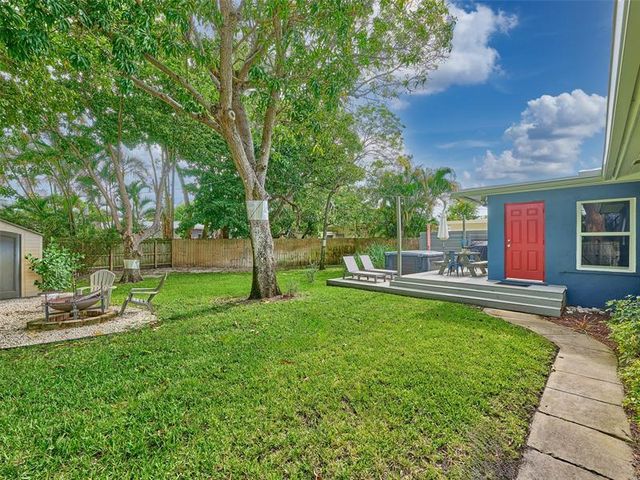 Wow! Highly sought-after East Fort Lauderdale, just 5 minutes from the beach and 10 minutes walk to Las Olas/ Downtown, nearby International Airport. Beautiful 3 bedroom, 2 bathroom & DEN. Developers Dream Project! Open concept living space, sleek tile & vinyl flooring with elegant recessed lighting. Renovations include updated electrical, New underground PVC, newer roof. Impact-rated windows and doors, contemporary kitchen, high-end stainless steel appliances, laundry room, washer & dryer. Private, resort-style, oversized backyard with lush landscaping and ample room for a custom pool, features an open porch, hot tub, outdoor BBQ station and fire pit, providing the perfect setting for entertaining in this turnkey property, vibrant community, excellent schools and a friendly atmosphere.
