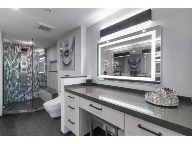 Experience sophisticated living in this beautifully renovated split bedroom condo in the heart of Downtown Boca Raton. This stunning condo w/spacious wrap around covered balcony has been thoughtfully redesigned w/modern updates to make it perfect for relaxing & entertaining. Step inside to discover plank flooring, stunning kitchen featuring custom cabinetry, quartz countertops, Thermidor appliances (wine refrigerator, induction cooktop, triple oven)& walk in pantry. The open-concept living & dining areas flow seamlessly onto the balcony. The primary suite offers intimate sitting room, private balcony, custom built-ins, walk in closet & elegantly styled bathroom w/dual vanities. Residents enjoy resort-style amenities including fitness center, pool & spa, concierge services & secure parking.
