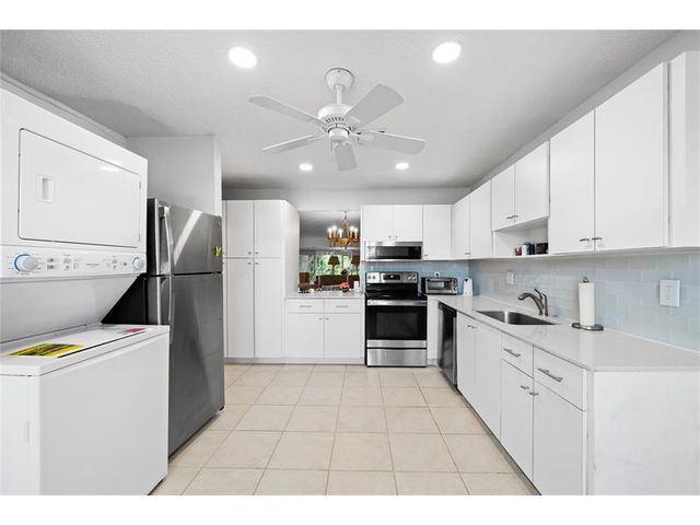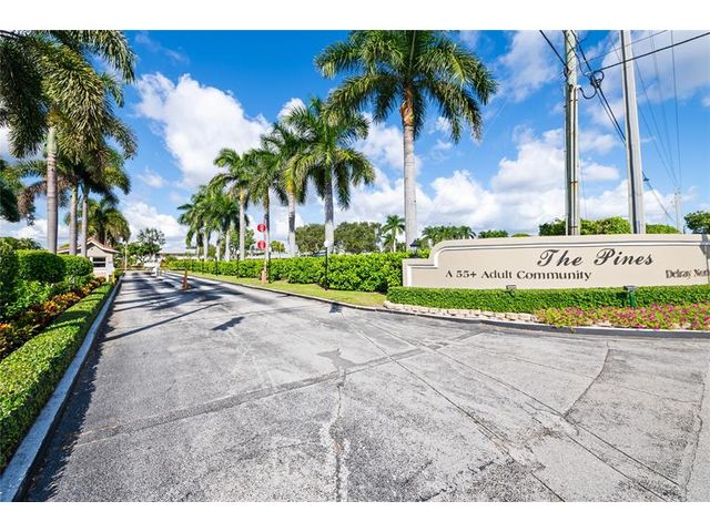 Enjoy over 1,500 sq. ft. of spacious living in this first floor condo—including a screened-in patio—in this beautifully renovated waterfront condo located in a quiet, park-like setting on the canal. This condo offers extra room to entertain in the huge great room and large eat-in kitchen w/open pass-through and scenic green views visible throughout the unit. The ensuite primary bedroom features dual vanities, two sinks, and two walk-in closets. Step outside and enjoy plenty of outdoor space to BBQ, fish, or simply relax in your private oasis. Other highlights include full accordion hurricane shutters, dedicated parking, and cable TV included. Pines of Delray North is a 55+ man-gated community w/an onsite manager, two pools, gym, clubhouse, and a variety of athletic and social activities.